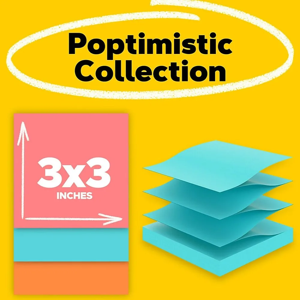Post-it Dispenser Notes, 3 in. x 3 in., are accordion-style notes specially designed to work in Post-it Note Dispensers. With these notes, you’ll always have a note nearby to capture great ideas. Unique adhesive is designed to work on paper or in planners. Use for notes or reminders to yourself or others. Cabinet pack is great to stock up your office, school or work area. The Poptimistic collection gives your messages pop and optimism with bright colors that grab attention. Post-it Dispenser Notes are recyclable and the paper in Post-it Notes is sourced from certified, renewable and responsibly managed forests. 18 Pads/Pack, 100 Sheets/Pad.