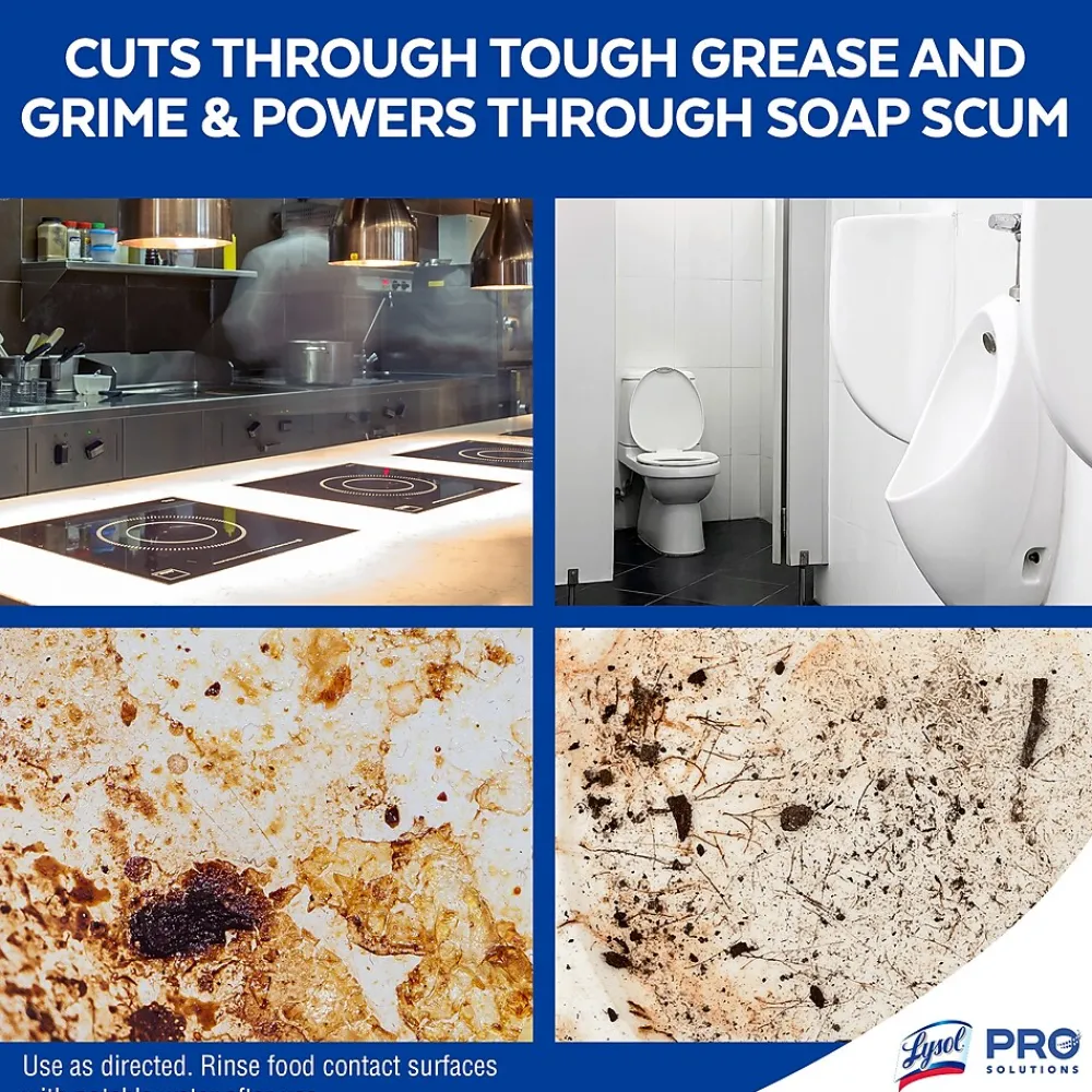 With Lysol® Power Clean Concentrated Multi-Surface Cleaner, you can cut through tough grease and grime and get twice the concentration per drop when compared to Lysol® Clean & Fresh Multi-Surface Cleaner. Delivers a fresh, clean scent with a fragrance burst, helping enhance the experience. The concentrated formula that yields 28 gallons, when diluted, of cleaning power is economical and can be used on a variety of hard, non-porous surfaces in kitchens and restrooms.