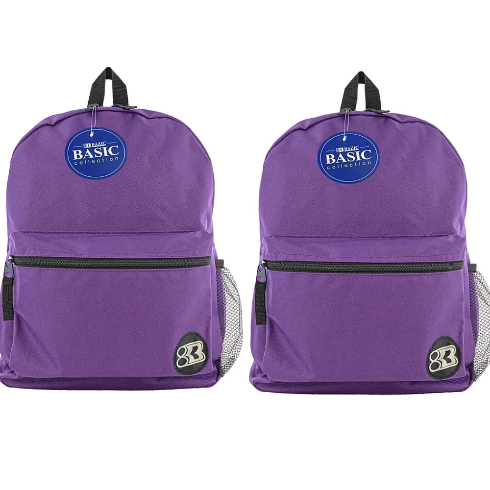 This 16″ school bag features 2 compartments: one large compartment mainly for larger items such as text book, binders, and laptops, the other compartment is a smaller compartment located in front, mainly for smaller items, such as cell phones, keys, and hand sanitizer. Both compartments have zipper closure. There are 2 adjustable shoulder straps nicely padded for comfort when carrying the backpack. There are 2 zipper pulls for the large compartment, and 1 zipper pull for the smaller compartment. There is a nylon handle on top of the backpack, convenient for hanging the backpack on hook outside of classrooms, or any hanger. Bazic Products’ logo is stitched in the front, on the bottom right of the small compartment for recognition. Sold as a pack of 2 backpacks.