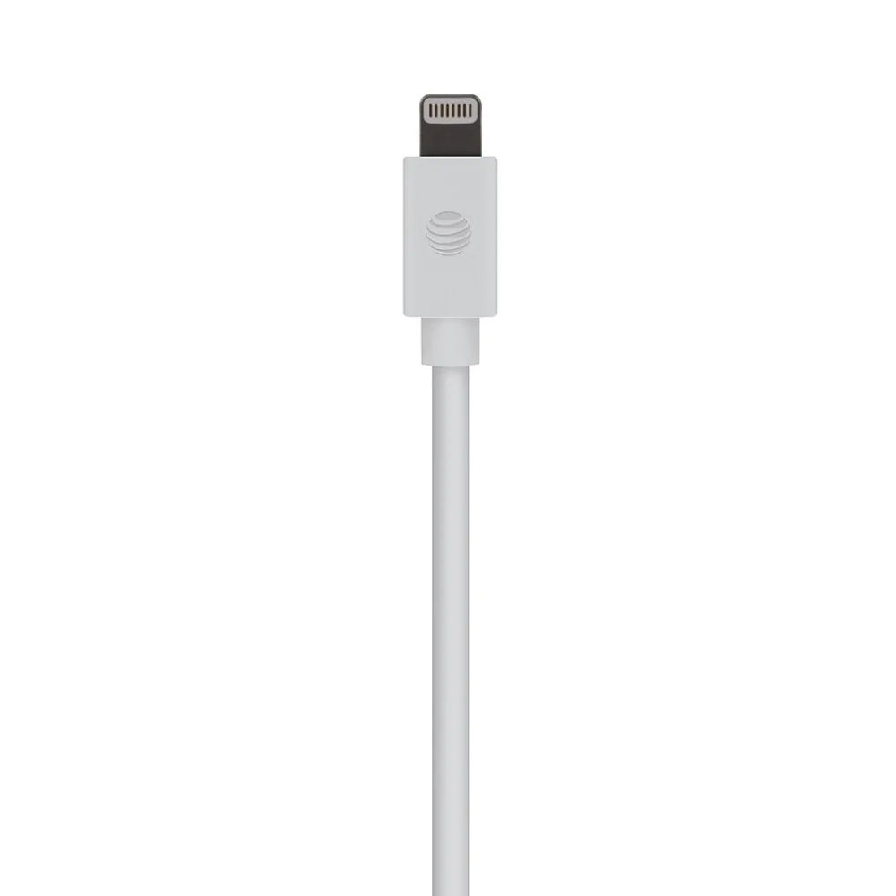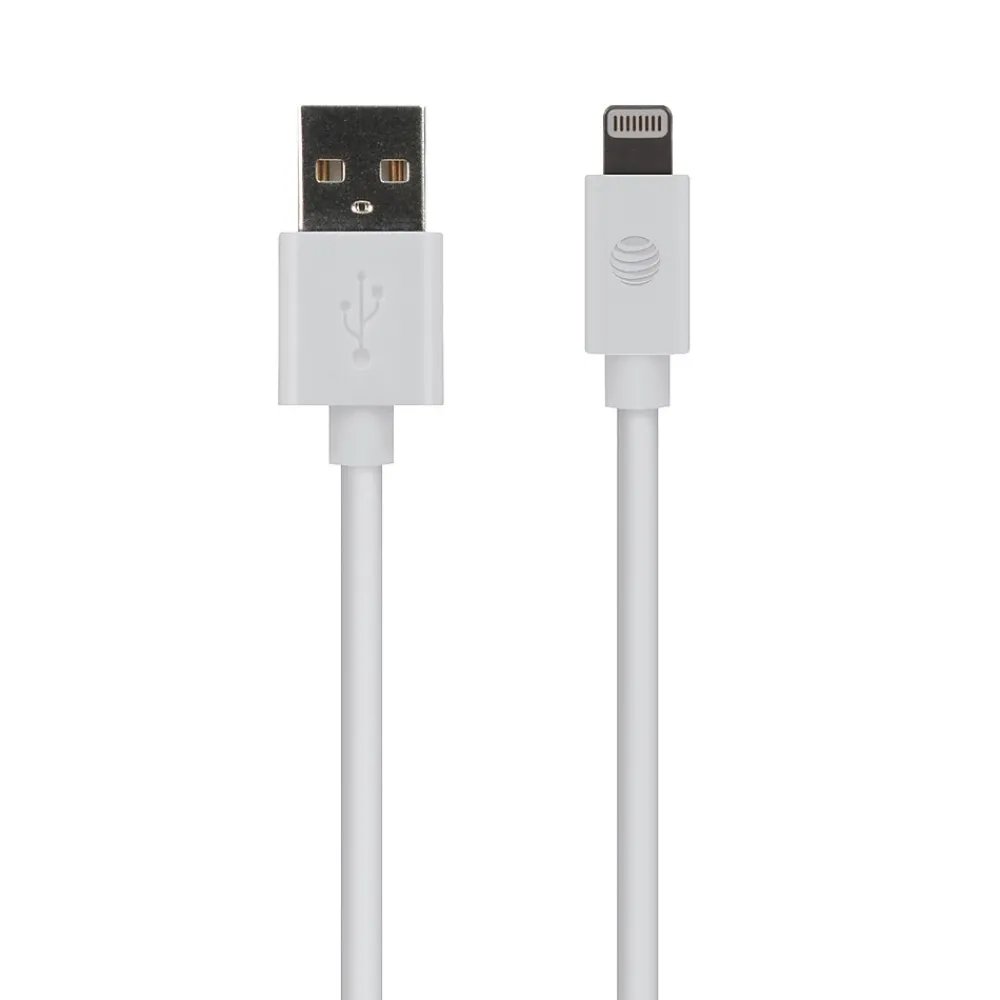Looking to charge and sync your Apple devices? Check out the White AT&T 10 Ft. PVC Charge and Sync Lightning Cable! This heavy-duty 26-gauge power lines carry 10 watts (2.4 amps) needed to charge iPads.