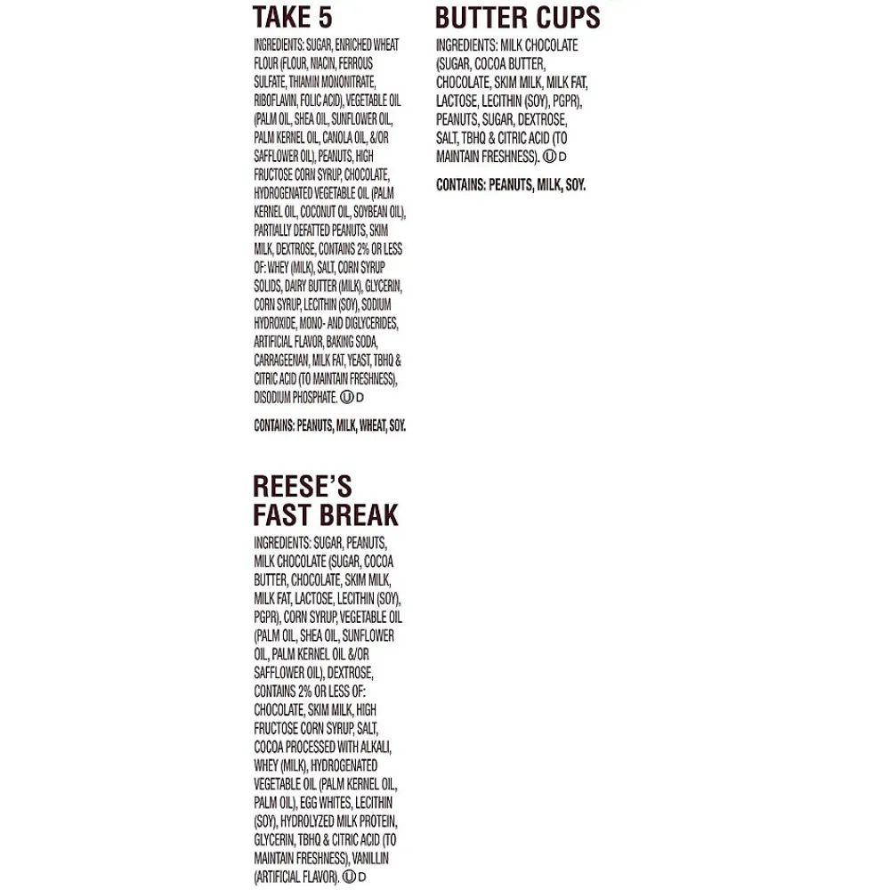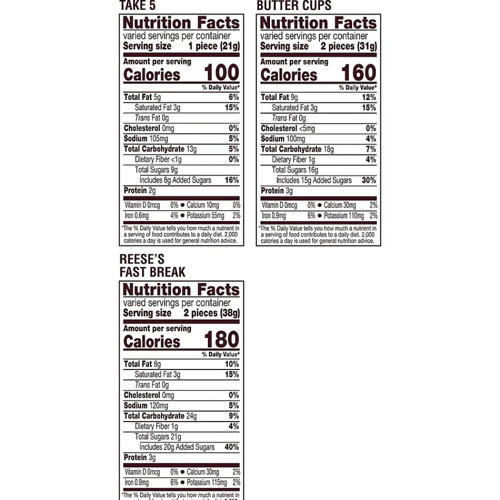 - Contains one (1) 32.06-ounce bulk party pack of REESE’S Milk Chocolate Peanut Butter Assortment Snack Size Candy including REESE’S Milk Chocolate Peanut Butter Cups, REESE’S TAKE 5 Candy Bars and REESE’S FAST BREAK Candy Bars