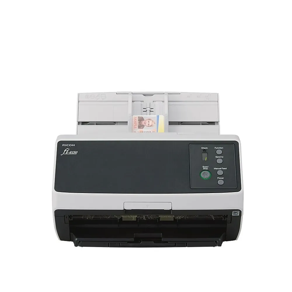 The RICOH fi-8150 front-office scanner for light workloads employs innovative feeding and Clear Image Capture technology to deliver industry leading reliability. Clear Image Capture (CIC) technology resets the benchmark for high quality image capture, by combining the reliability and flexibility of Contact Imaging Sensor (CIS) hardware, with an industry-leading, image processor. CIC technology delivers precise, crisp images, and industry-leading OCR accuracy rates while also removing unwanted watermarks and artifacts.