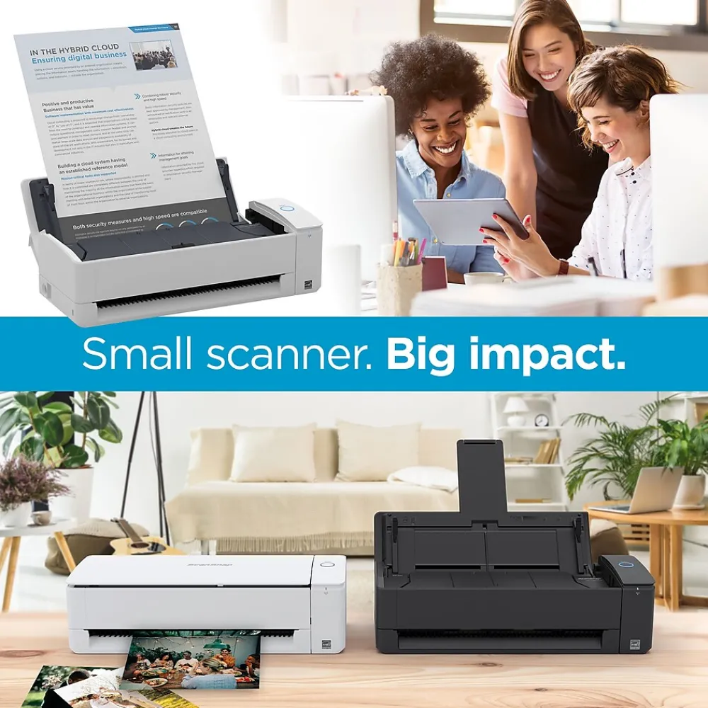 Incredibly compact, the RICOH ScanSnap iX1300 features an innovative design that was built to empower users with faster, more convenient, Wi-Fi enabled scanning in an even smaller operating footprint. The model offers two scanning modes that offer a quicker and more efficient way to scan, while also supporting a wider range of document types and needs without taking up space on your desk, enabling work in virtually any environment. The ScanSnap iX1300 was made to fit just about anywhere, from your entryway to the corner nook of your home office, offering an incredibly small operating footprint. And, thanks to its Wi-Fi capabilities, the ScanSnap iX1300 can scan from just about anywhere you have a power outlet, allowing you to easily place the device right at the point of entry for paperwork, mail, or other documents that enter your home or business.