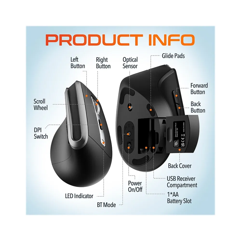 Experience the ultimate combination of comfort, convenience, functionality, and longevity with the Delton S20 wireless ergonomic mouse, the wireless mouse that delivers exceptional performance while reducing wrist strain, preserving battery life, and revolutionizing the way you interact with your devices. The vertical mouse design is sculpted so you can comfortably rest your hand in a more natural position, preventing arm pronation and the strain it puts on your wrist. The S20 is perfect when productivity and performance matter. The next-generation optical mouse sensor on the S20 offers responsiveness on nearly any surface and delivers remarkable speed and precision. Say goodbye to tangled wires and welcome an era of productivity and comfort with the S20 computer mouse.