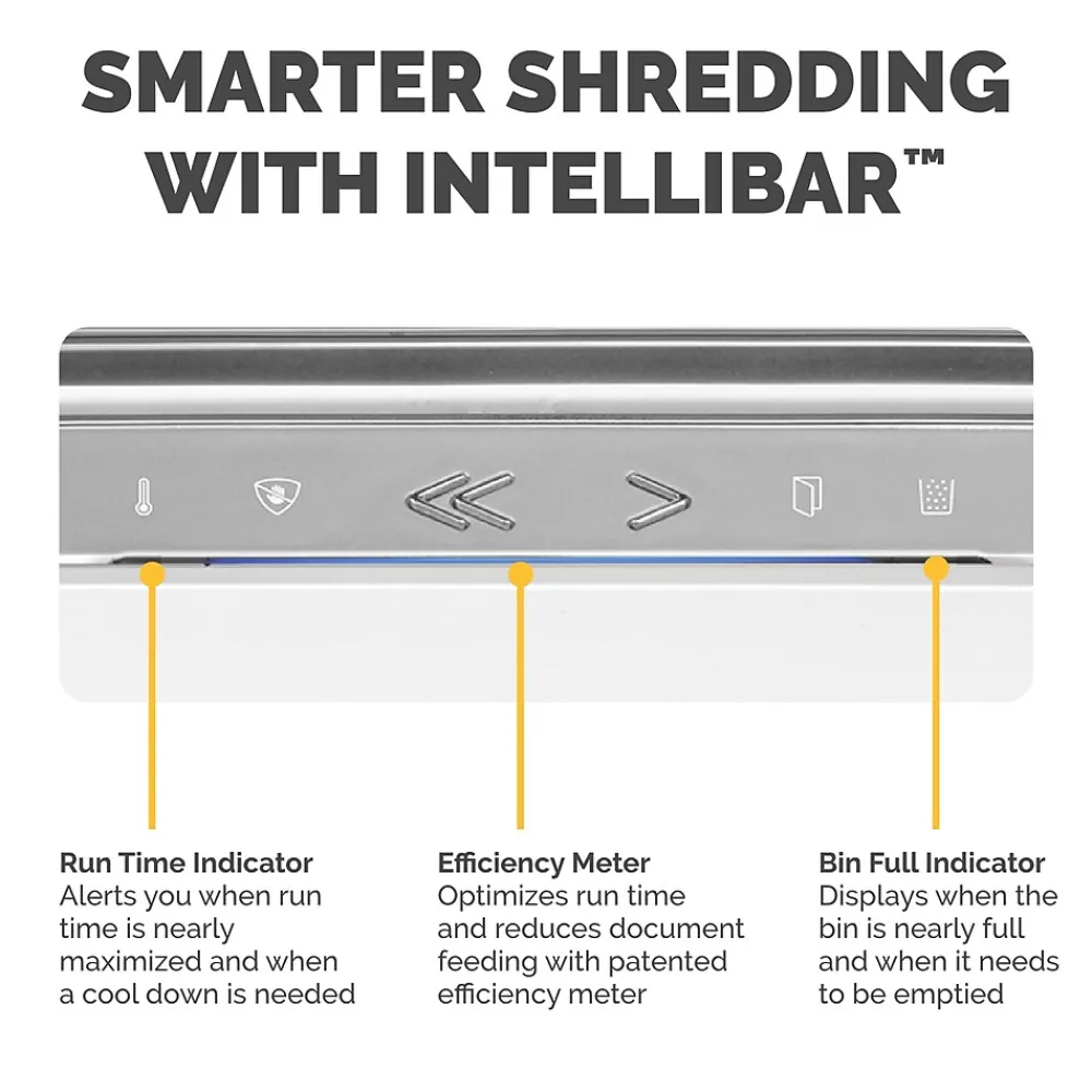 - Monitor real time performance with bin full and run time indicators and optimize how many sheets to feed at one time with the efficiency meter
