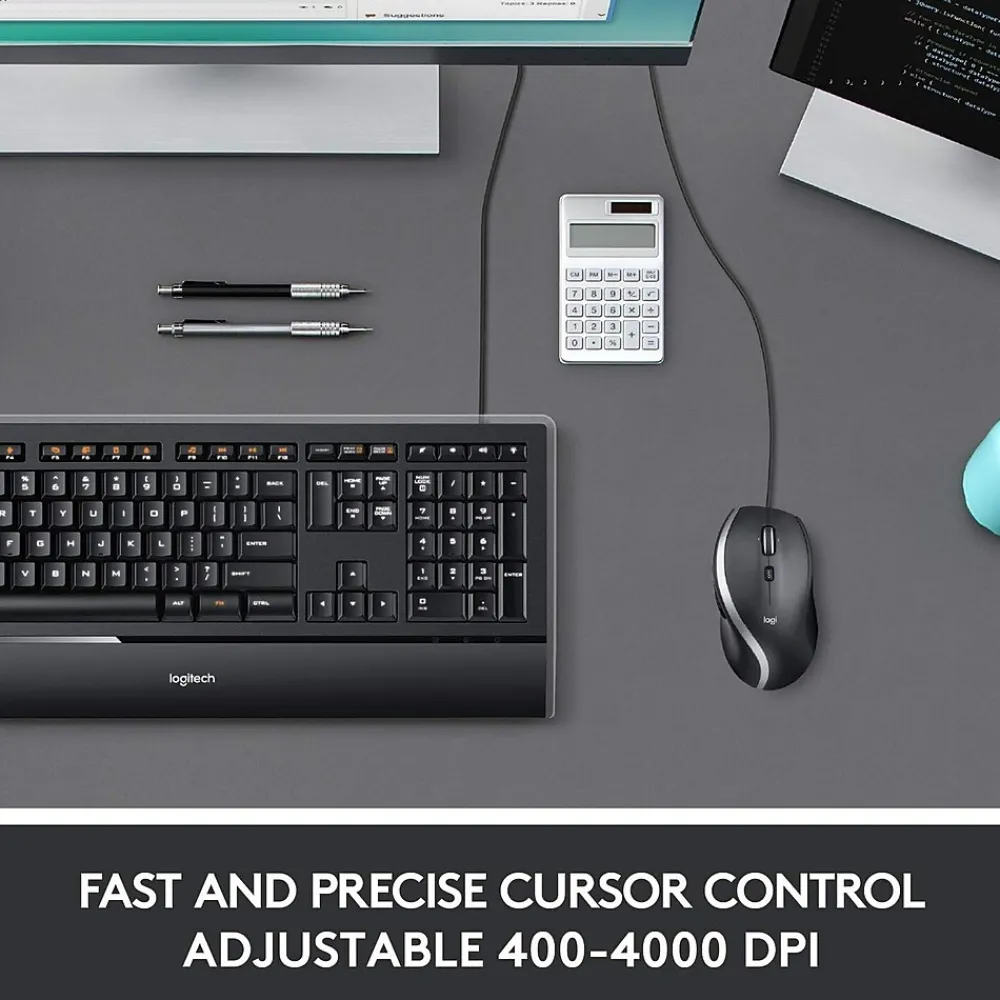 The Logitech Advanced Corded Mouse M500s with hyper-fast scrolling for increased productivity. The scroll wheel lets you fly through long documents and Web pages with a single flick. Or switch to click-to-click mode for precise, line-by-line navigation of lists, slides, images, and menus. Now with 400-4000 adjustable DPI for fast and ultra-precise cursor control.