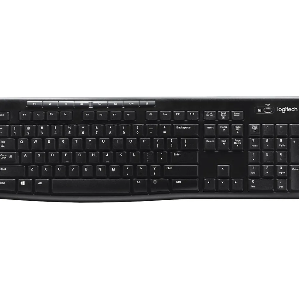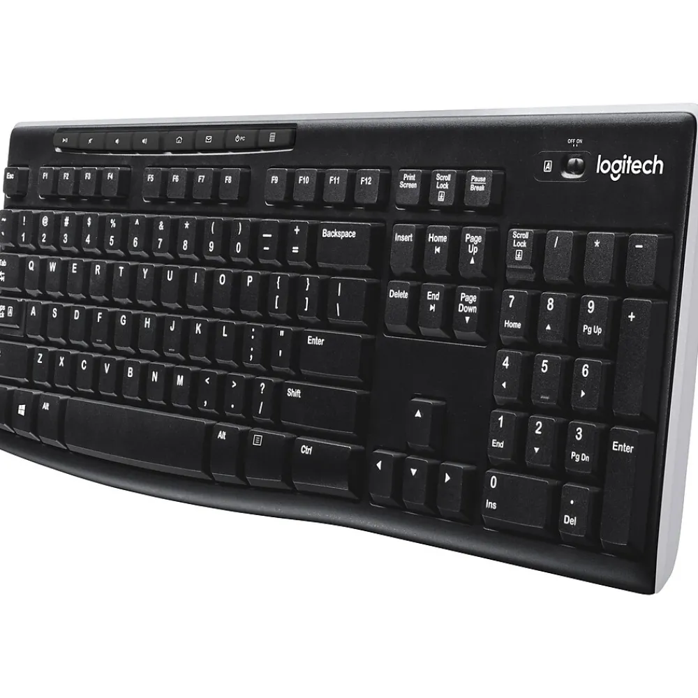 Logitech K270 USB wireless black keyboards optimize your computing set-up with wireless connectivity that works up to 30 feet away with no delays or dropouts. This full-size keyboard contains everything you need to enhance your productivity, including a full-sized keypad, but there are also eight shortcut keys that manage multimedia options for when you have videoconferencing or video training. A long battery life ensures your keyboard doesn’t cut out at inopportune moments when you have a busy day typing reports or presentations.