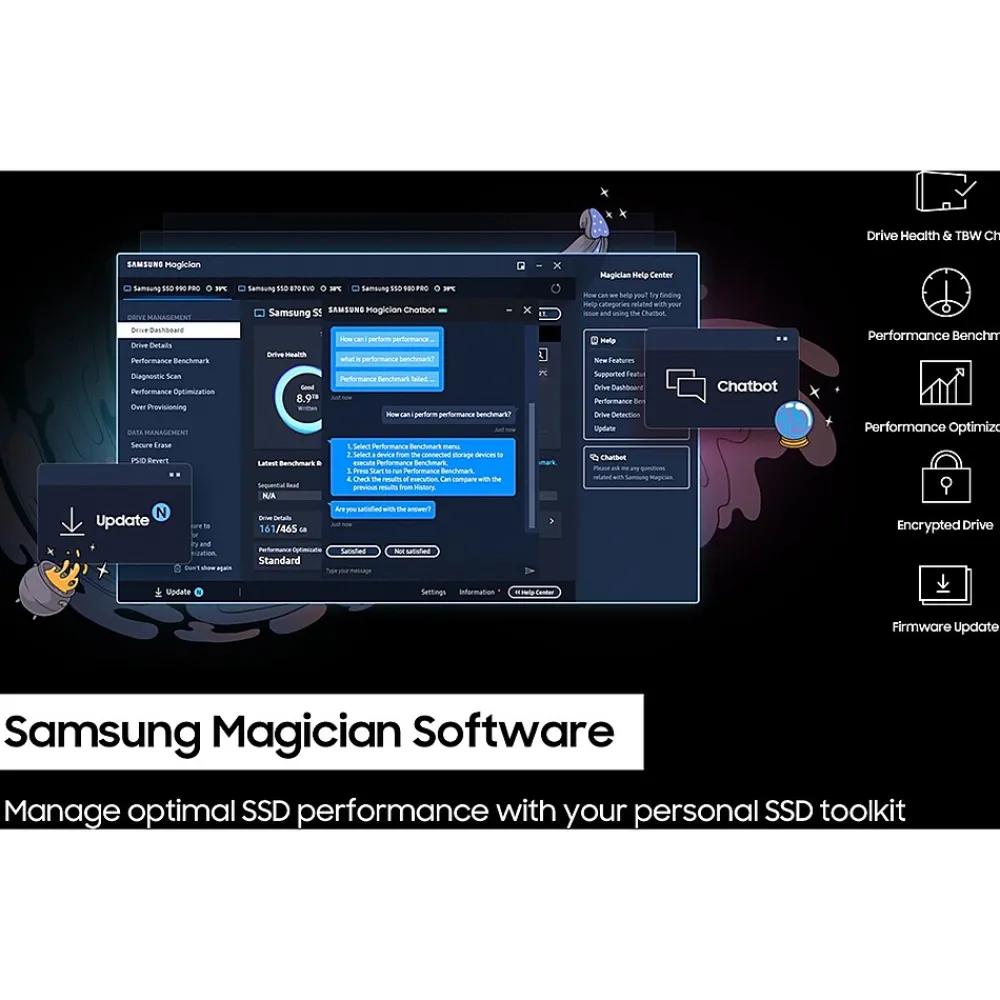 - Get the most out of your SSD with Samsung Magician’s advanced yet intuitive optimization tools