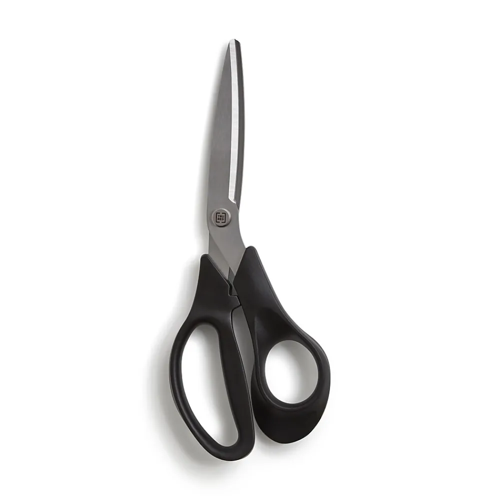 Bring beautiful lines and clean edges to documents, pictures and creative projects with these scissors. The bent handles feature an ergonomic design for added comfort, while the bent blades keep materials flat for more accurate results. Featuring durable construction, these TRU RED™ 8-inch stainless steel scissors are created for long-lasting use.