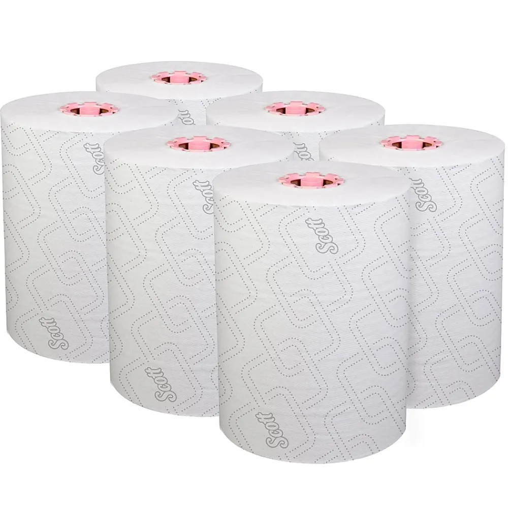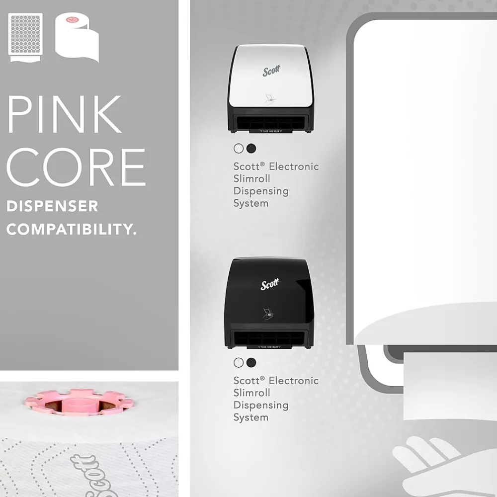 - 580’/Roll, 6 Scott® Pro™ Slimroll™ Hard Roll Towel Rolls/Case; 3,480’/Case; with Absorbency Pockets™; for Pink Core Dispensers; White