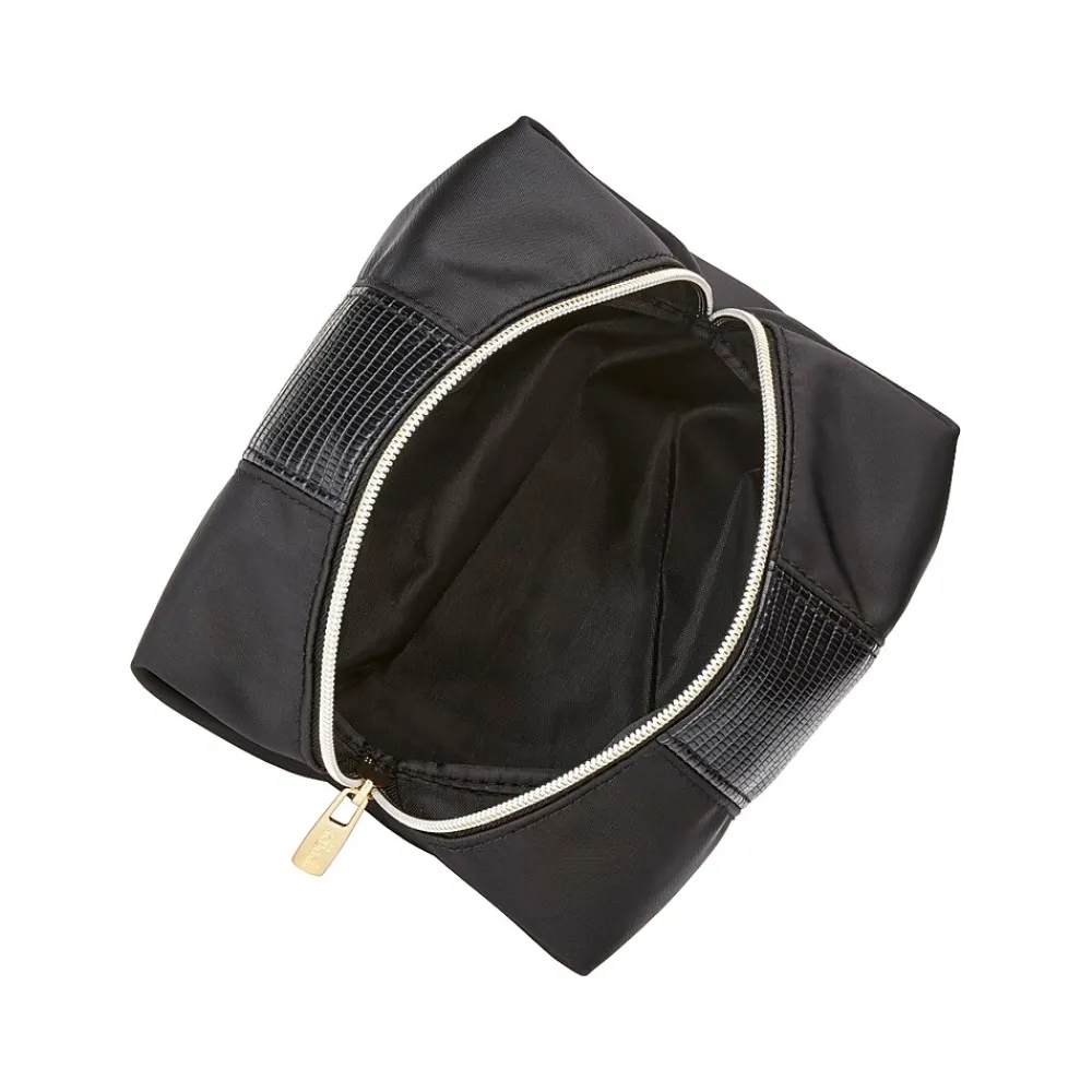 The stylishly sleek Conair scunci black organizer combines fashion and function and features a spacious compartment with gold-tone coil zipper and pullers.