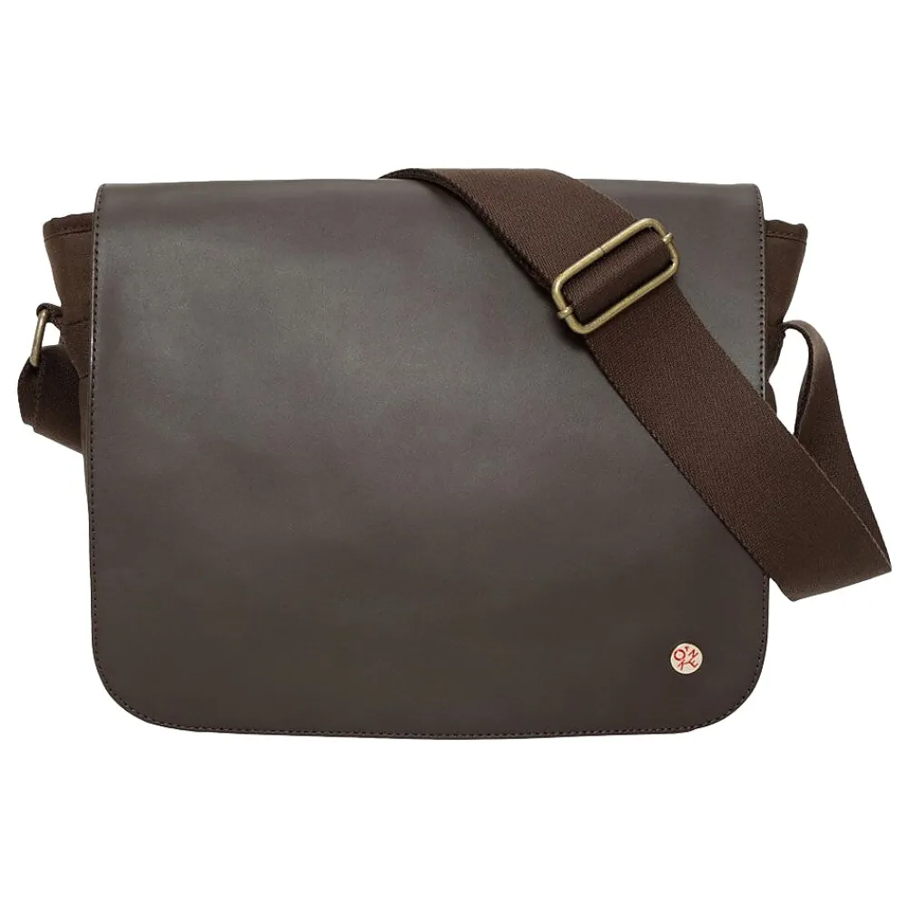 - Made with a waxed nylon body, soft leather flap and base that look distinguished and only acquire more character through the years; comes in dark brown