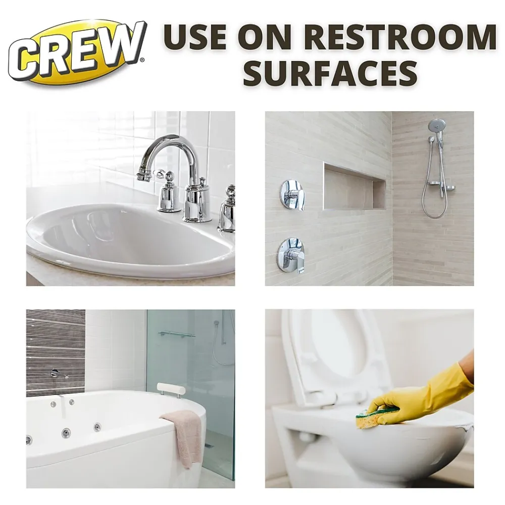Crew® Shower, Tub & Tile Cleaner is an all-purpose cleaner commonly used in areas where water is present, such as showers, bath tubs, toilets, urinals and sinks. This non-abrasive acidic cleaner makes cleaning faster and easier. Formula is brilliant red with a fresh, clean scent.