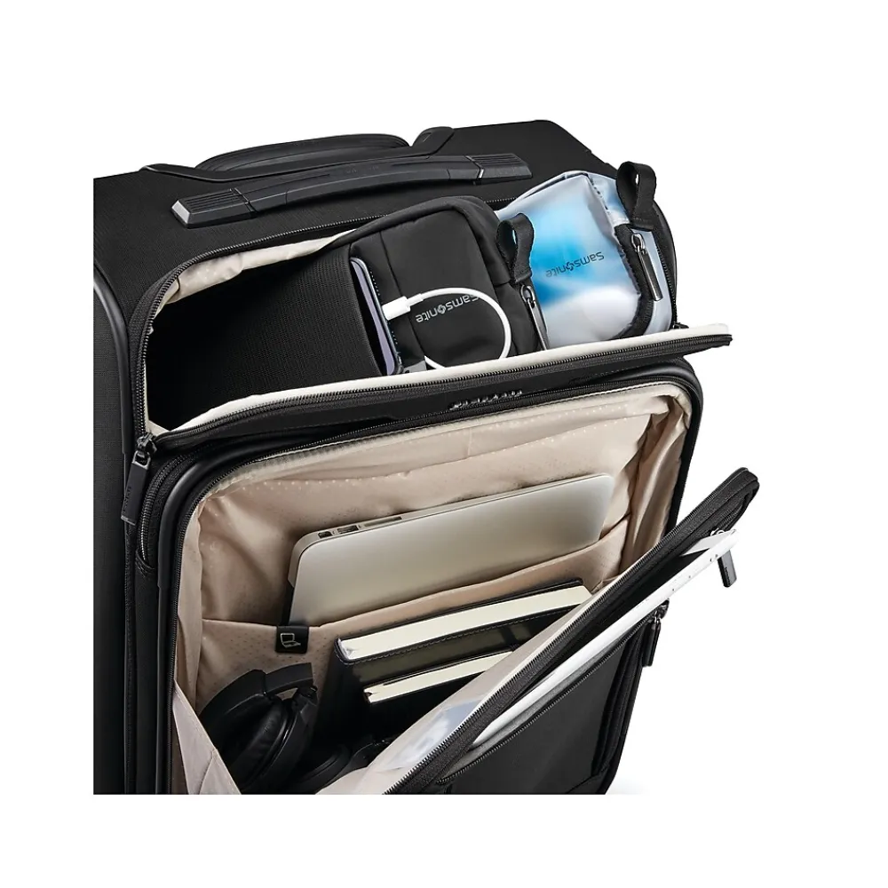 The Samsonite Silhouette collection launched in 1958 as the most advanced luggage ever made. 60 years of modernization leads us to Silhouette 17, an update to Samsonite’s longest-lasting collection for global executives. This is your power carry-on. Plug in your wireless charger and slip in your phone to the TecKit easily accessible through the smart top pocket. Inside, locate everything with an organized interior fully featured with a FlexPack system, and enjoy the glide with the Tru-Trac GT REV wheels.