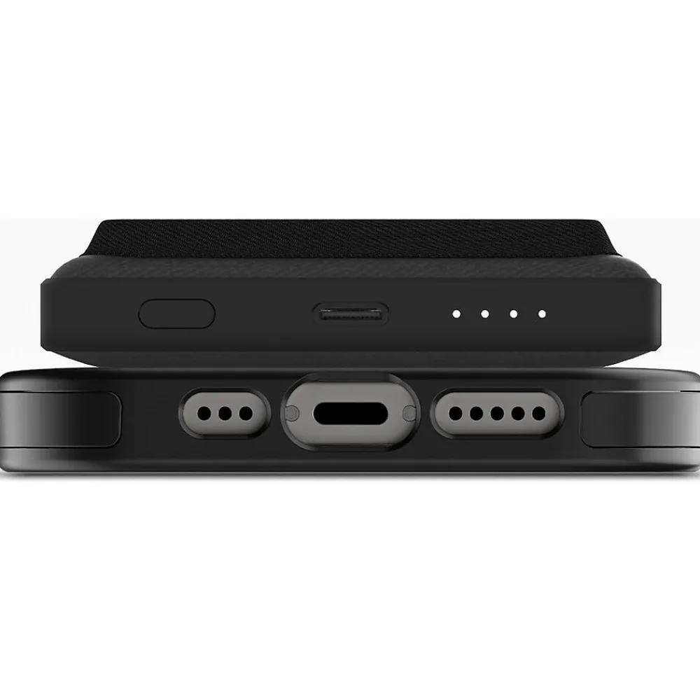 The ultimate accessory for your smartphone has arrived. Travel light with only the essentials and give your phone a boost of power, all with the Mophie snap+ juice pack mini wallet. The Mophie snap+ juice pack mini wallet wirelessly charges most iPhone 15/14/13/12 series phones, and any other Qi-enabled smartphone, and offers a convenient card holder in one compact accessory that easily attaches to the back of your phone.