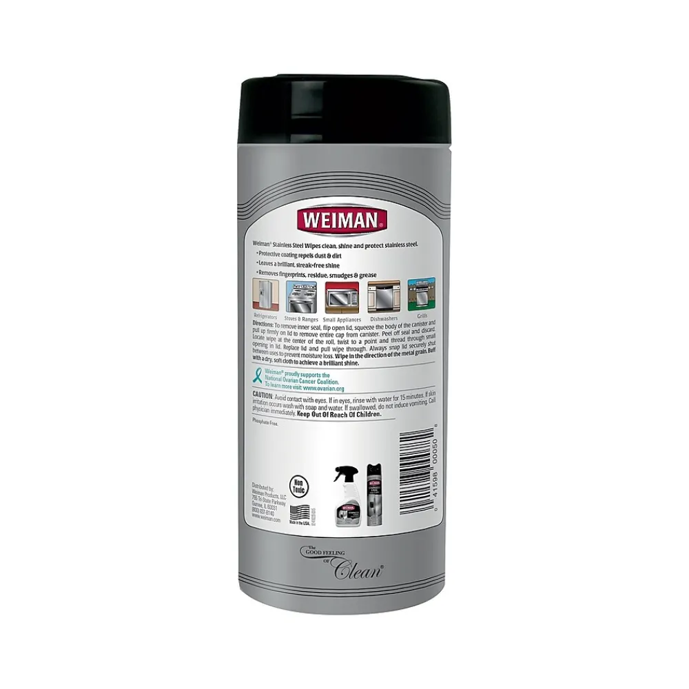 Give your appliances a new shine with these Weiman stainless steel wipes. The fresh-scented wipes leave a protective coating on your appliance’s surface to repel dirt and dust, and they are designed to resist grease, watermarks, and fingerprints. These Weiman stainless steel wipes come in a canister of 30 wipes, which you can use for three to six months once you open the canister.