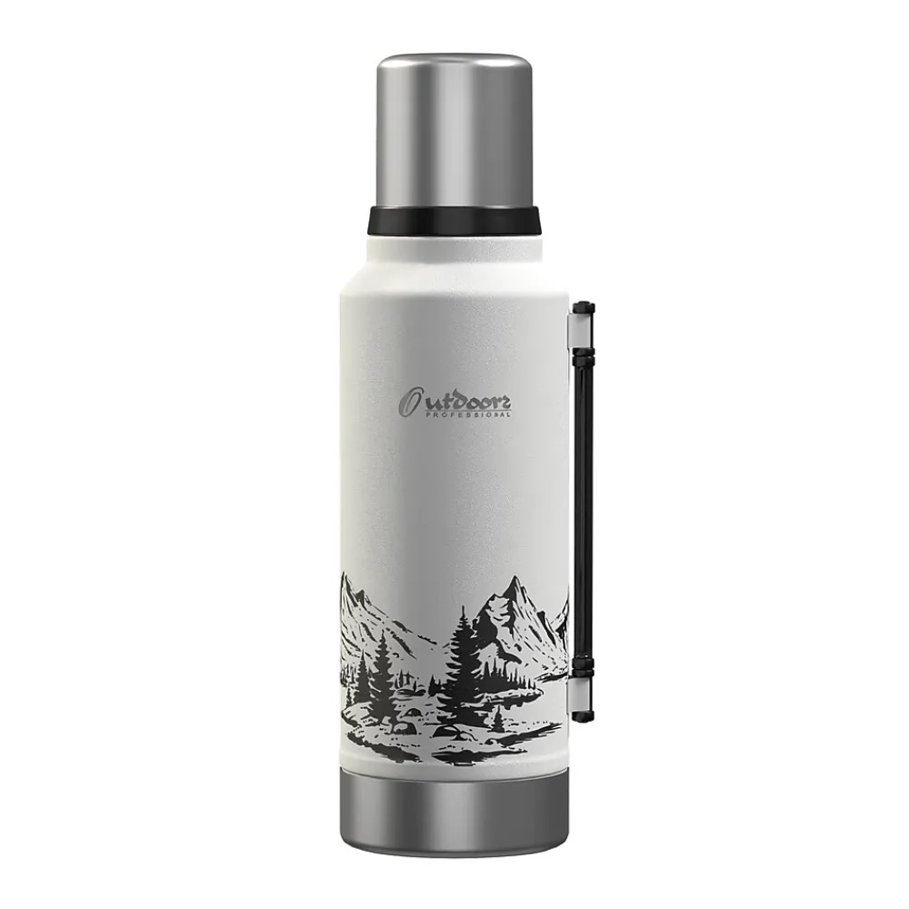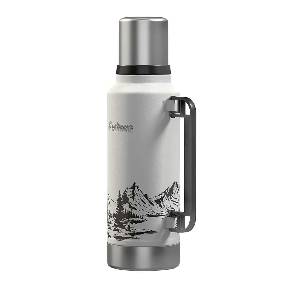 The Outdoors Professional White Mountains 33.8-Oz. Termo Classic Vacuum Bottle with Carry Handle is made with superior insulation that keeps liquids (soup, coffee, tea) hot for up to 24 hours or cold drinks cool for up to 24 hours. Add ice to your favorite beverage and the Termo classic will keep it cold for up to 5 days. The rustproof stainless steel construction means it can work just as hard as you do without impacting its performance. This is an ideal bottle to throw in your truck, work bag, or travel with it. It’s made with BPA-free materials, keeping its contents safe to consume. This 1-L bottle features a leak-resistant lid, so you can put it in your backpack without worrying about any spills. The wide mouth opening helps with easy pouring into the lid that doubles as a cup. The collapsible handle makes it easy to transport when you’re on the go.