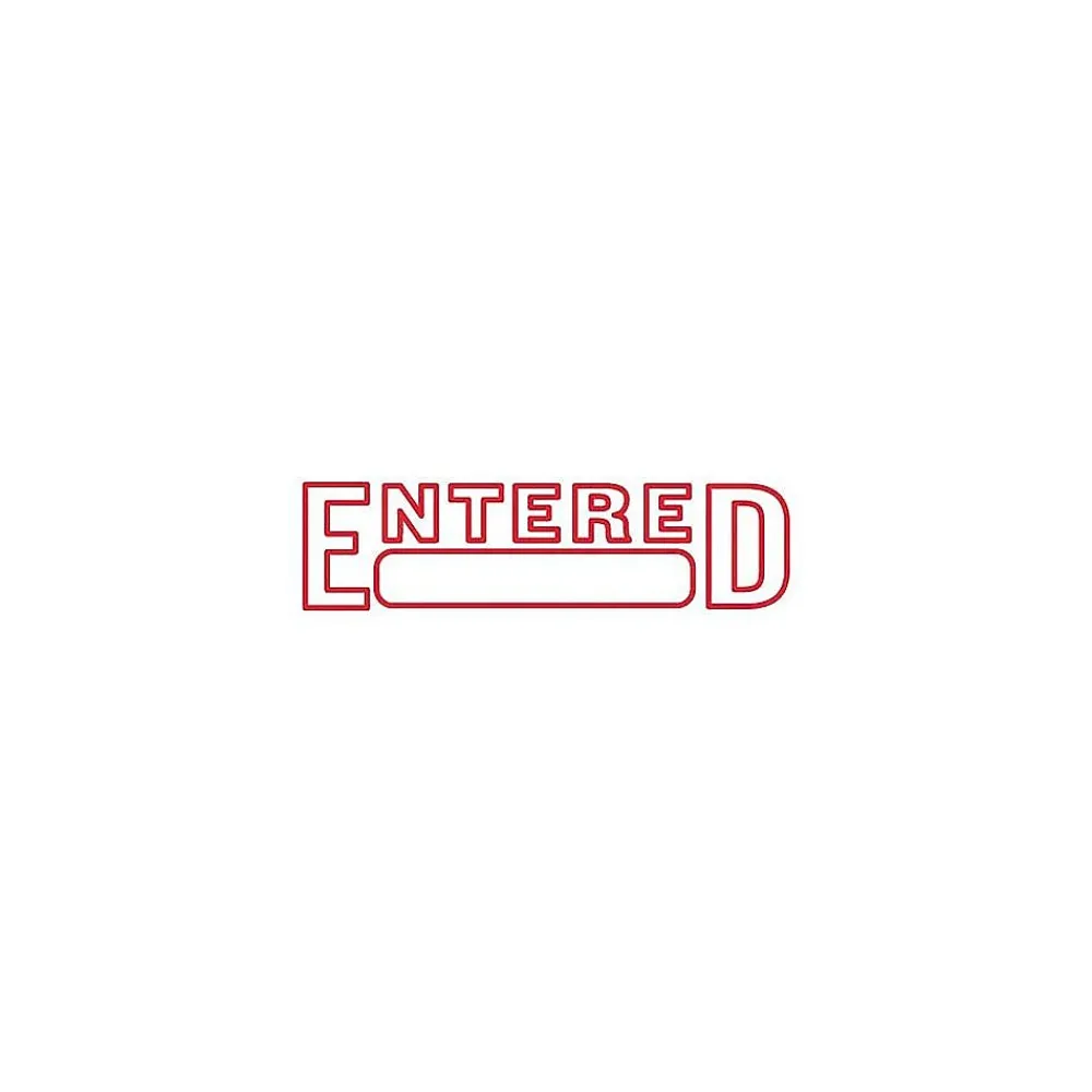 Mark documents as completed with this pre-inked stamp. The large Entered message lets you know when invoices, pay sheets, and other documents have been put into the system, and the empty box lets you add a date and time. This Offistamp pre-inked stamp creates bold red impressions for better visibility.