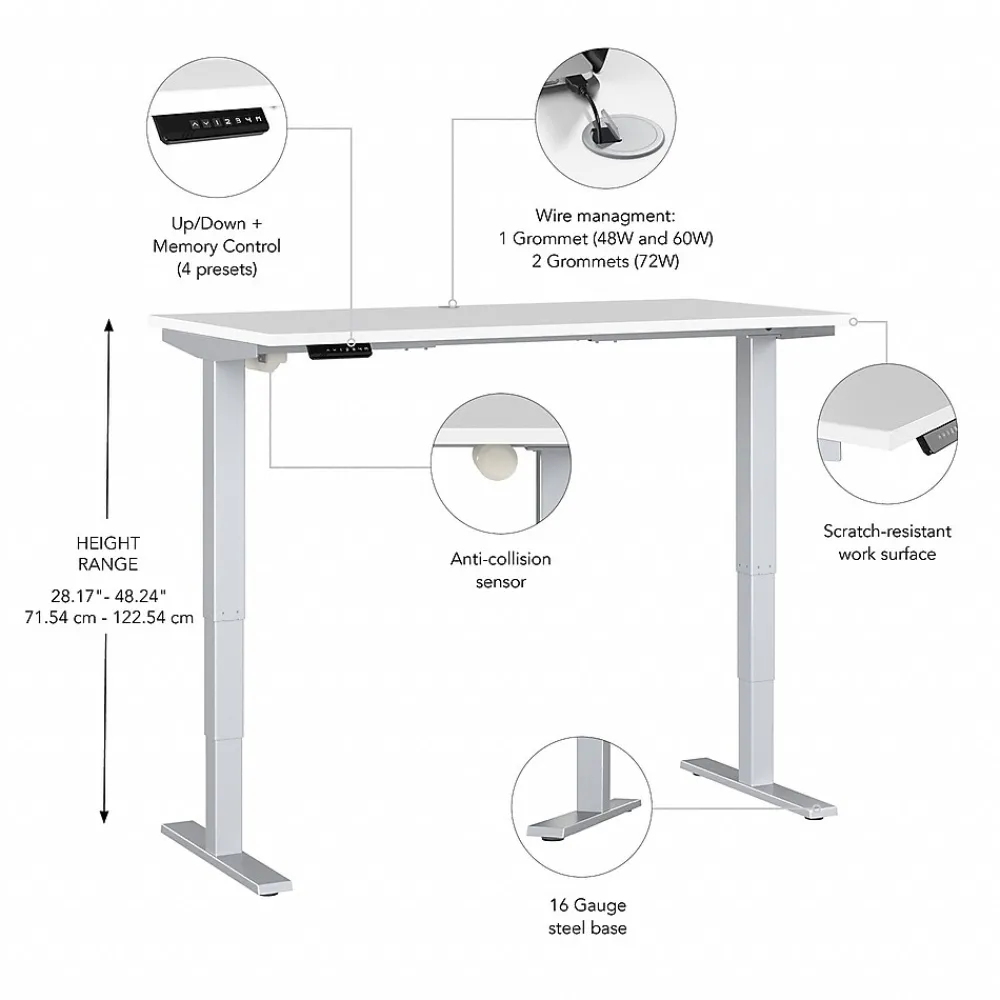 Standing Desks*Bush Business Furniture Move 40 Series 60"W Electric Height Adjustable Standing Desk, White/Cool Gray Metallic (M4S6030WHSK)