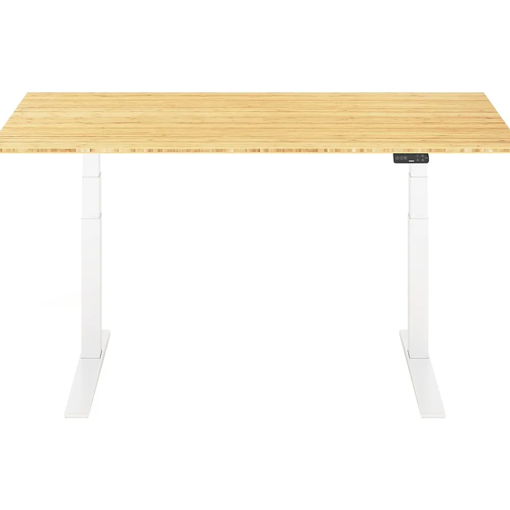 - Made with an environment-friendly light bamboo desktop and a heavy-duty steel base in white