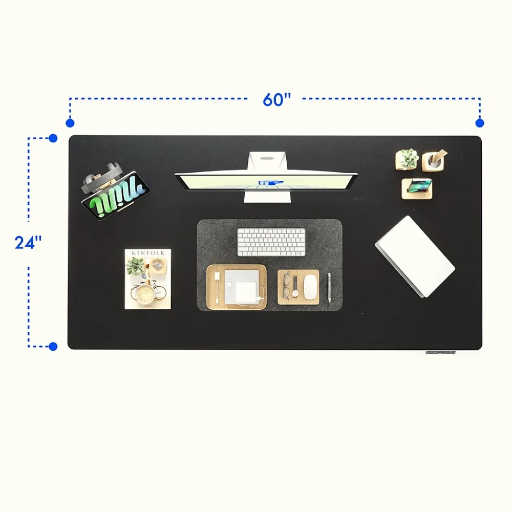 - Desktop is 60″ wide and 24″ deep and holds 355 lbs.