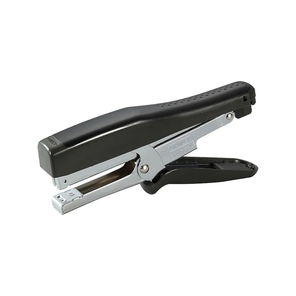 - Black in color with metal and composite construction for quality and durability. With Soft rubber handle for stapling comfort