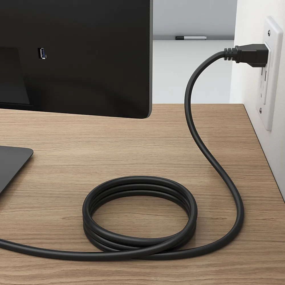 This power cable features built-in 3-prong grounding for enhanced safety. The 6-foot cord gives you enough length for everyday setups but is short enough to keep clutter to a minimum. It’s versatile, so you can use it with PCs, monitors, printers, gaming consoles, and more. Its sturdy 6-foot length delivers reliable 120V power, and the 3-prong grounding. Power up and stay that way in your home or office.