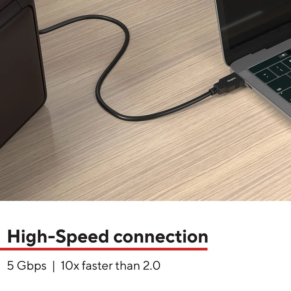 Reliably charge or sync personal electronic devices – like mice, keyboards, gaming headsets and more – with the Staples TECH USB-A cable. The 6-foot cable is compact to reduce cord clutter, and the USB 3.0 boasts high-speed data transfer speeds up to 5 Gbps. Keep your workday running smoothly with the Staples TECH USB-A cable. Backed by Staples Brands 100% satisfaction guarantee, or your money back.
