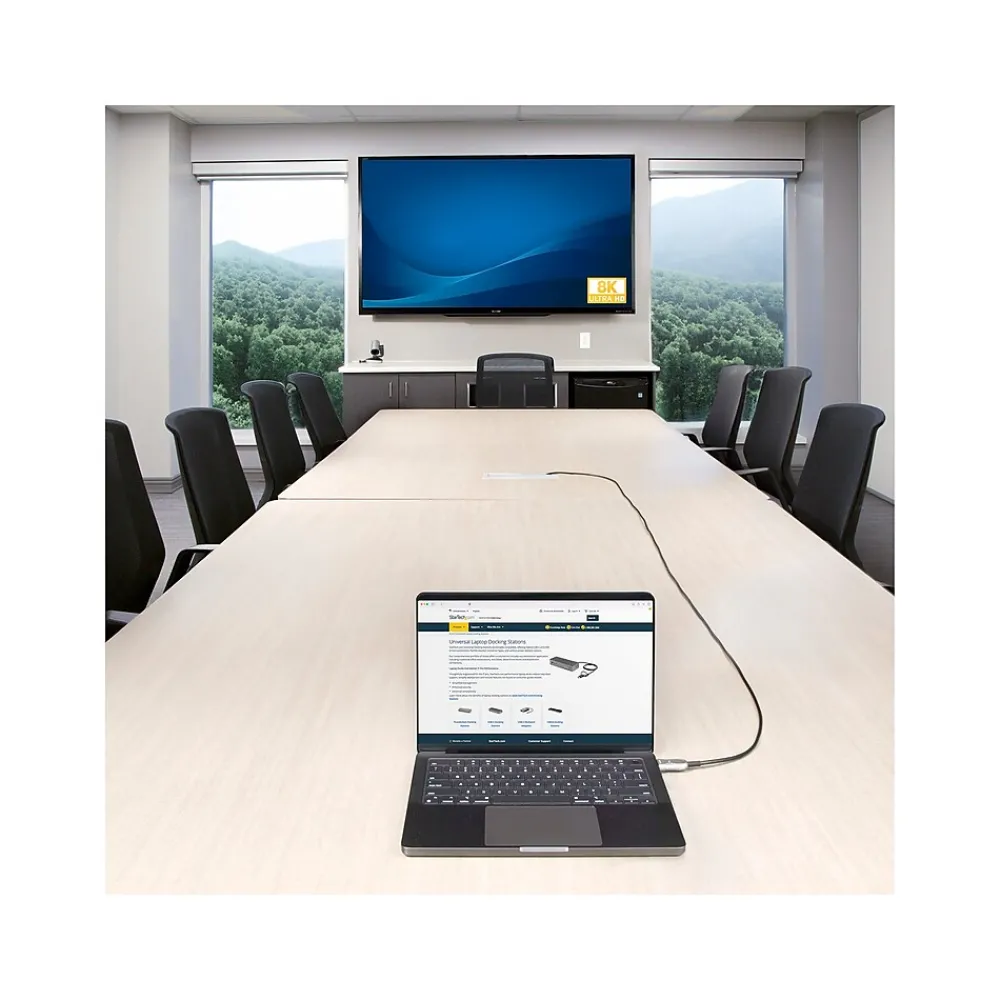 Route this ultra high-speed HDMI 2.1 hybrid active optical cable (AOC) through office plenum spaces for long-distance transmission of 8K 60Hz video and high-quality audio. The HDMI 2.1 AOC incorporates a hybrid construction consisting of fiber optic cores and copper conductors. This enables the offloading of low-bandwidth signals (EDID/HDCP/eARC) to maintain high-bandwidth transmission of 8K 60Hz video over fiber. The fiber optic inner cores and shielded copper conductors greatly reduce EMI for optimal signal quality across longer distances. This Plenum-Rated HDMI 2.1 cable features a CMP-rated cable jacket with low-smoke and flame characteristics. It is great for use in plenum spaces in buildings (e.g., ceilings and in-wall installations). The optical fiber core is reinforced with Aramid strands for tensile strength and is rated to withstand over 6000 bending cycles at 120 degrees. This protects the cable from damage when routing through tight spaces requiring multiple bends.