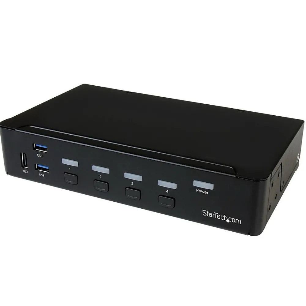 The StarTech.com® SV431HDU3A2 4-port HDMI KVM switch allows you to control four HDMI computers with a single monitor, keyboard and mouse. This KVM switch has a built-in 4-port USB 3.0 hub that allows you to share USB peripheral devices between each connected computer. Using USB 3.0, you can achieve data transfer rates up to 5 Gbps, ensuring flawless performance for your USB peripherals. This KVM switch supports HDMI display of 1920 x 1080 video resolutions.