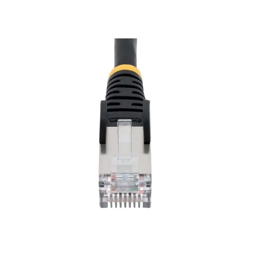 - SHIELDED CAT6A CABLE: Improved signal integrity and protection against noise & electromagnetic (EMI/RFI) interference – Individual twisted pairs wrapped in foil – Outer covering w/ braided shield – Shielded RJ45 connectors with gold-plated pins