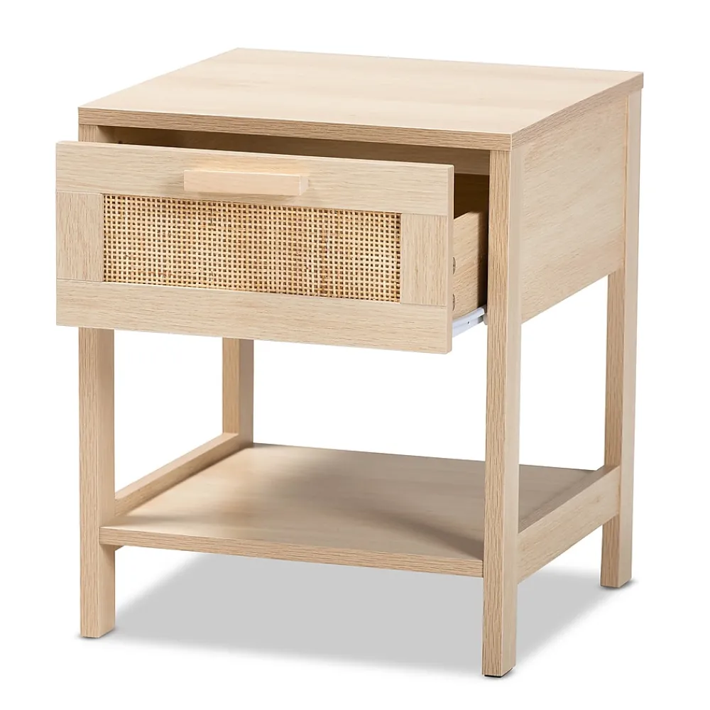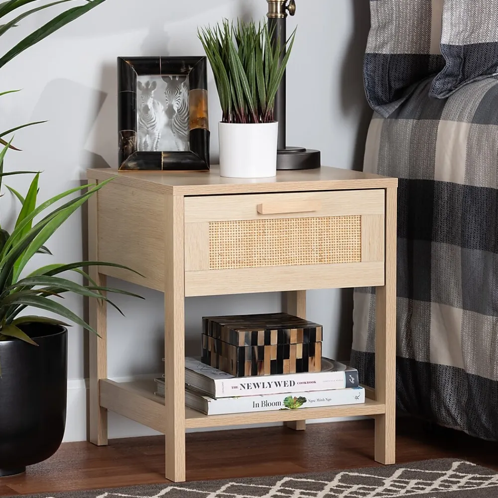 Dressed in the timeless aesthetic of the mid-century, the Sebille nightstand is an attractive yet versatile bedside accessory. Made in China, this handy piece is comprised of a sturdy wood frame adorned with natural rattan accents. Its drawer offers space to organize bedroom essentials and reserve the tabletop for nightly use. Requiring assembly, the Sebille features an open shelf that accommodates larger items. Carrying the appeal of classic design to the modern era, the Sebille nightstand fits right at home in any bedroom layout.Due to the nature of the natural materials used in this product, it may have variations in areas such as, but not limited to, color, pattern, grain and texture. The hair-like strands of rattan/rattan-fiber are common due to nature of the material.