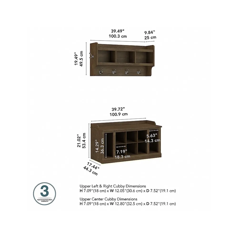 Storage Cabinets*Bush Furniture Woodland 40W Shoe Storage Bench with Shelves and Wall Mounted Coat Rack, Ash Brown (WDL004ABR)