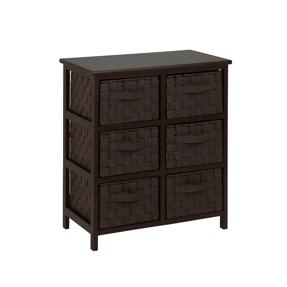 Honey-Can-Do TBL-03759 6-Drawer Storage Chest, Espresso Black. Getting organized has never looked better with this impressive double woven chest. This storage unit has six spacious drawers to hold clothes, tools, office supplies or anything else that needs tucked away. A natural wood top surface provides even more storage space and can double as a night stand. Coordinates with other pieces in Honey-Can-Do’s collection of double woven products.