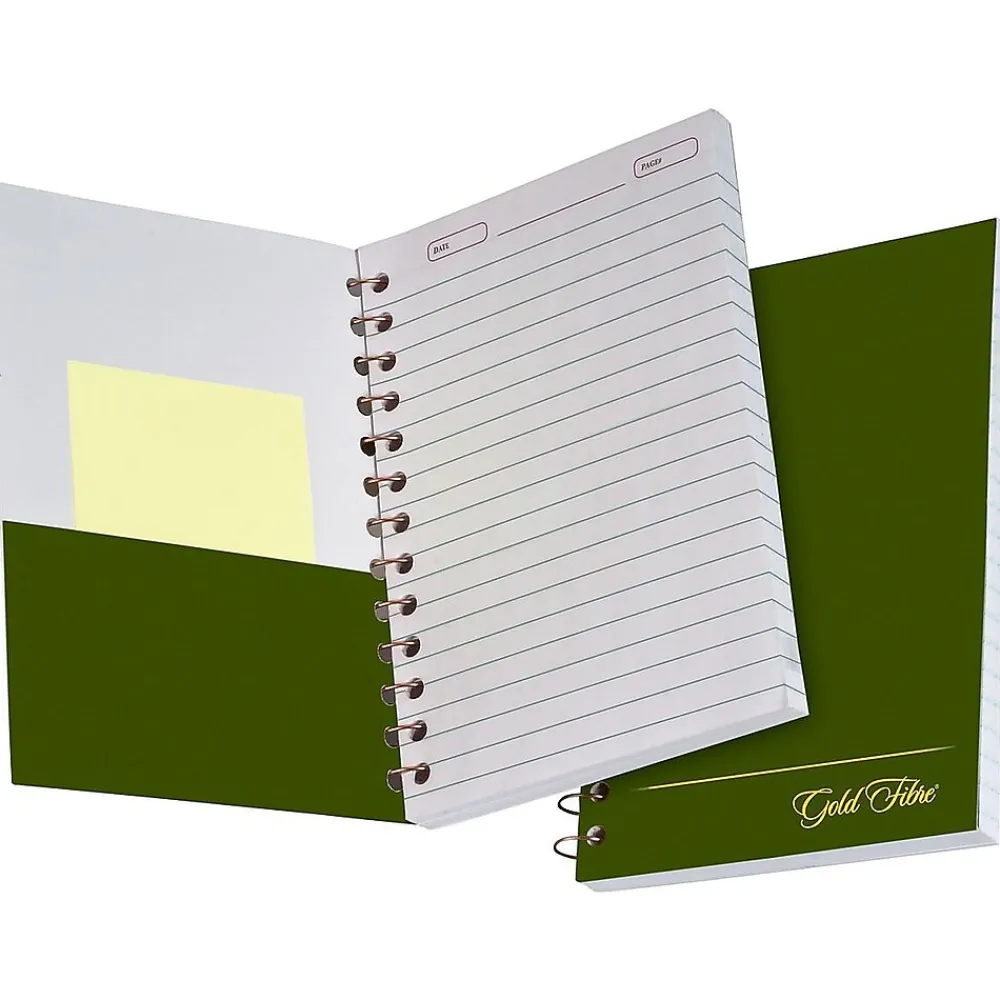 Keep track of memorable ideas in this sturdy personal notebook. The rigid chipboard covers provide a firm writing surface, and brass wire binding lets you turn pages smoothly while keeping pages securely together. With 100 college-ruled sheets, this notebook provides ample space to jot down notes, and each page in this Ampad Gold Fibre notebook is perforated for easy sheet removal.