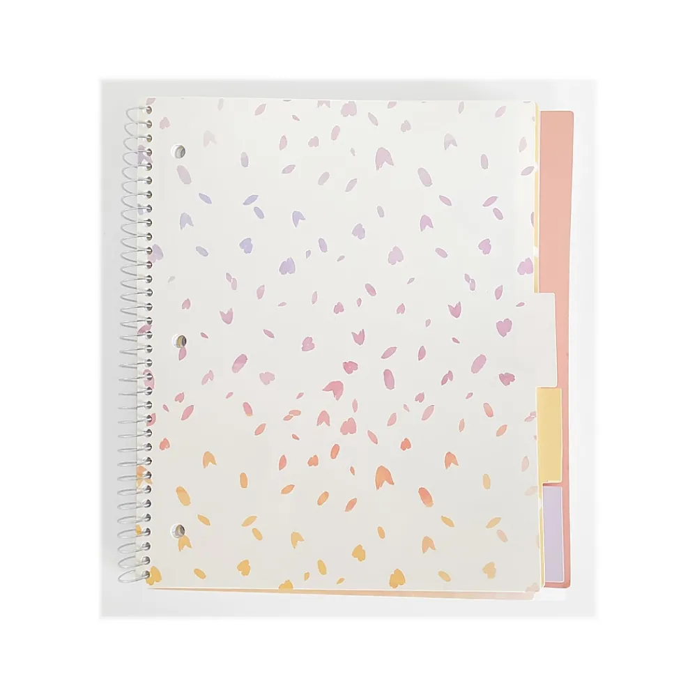 The Silver Lining five-subject notebook from Carolina Pad features inspirational quotes with a watercolor art look. This five-subject notebook was designed with care and consideration for its purpose. Multi-subject organizing is made simple and secure. Each section features a divider with pocket and die-cut tab. The front cover is made of heavy-duty poly that extends to cover and protect the tabs, along with the extended heavy-duty board back cover. Under the poly front cover is a secondary board cover. Contains 150 perforated three-hole punched college-ruled sheets that are wood-free. The silver-tone metal binding holds the pages securely.