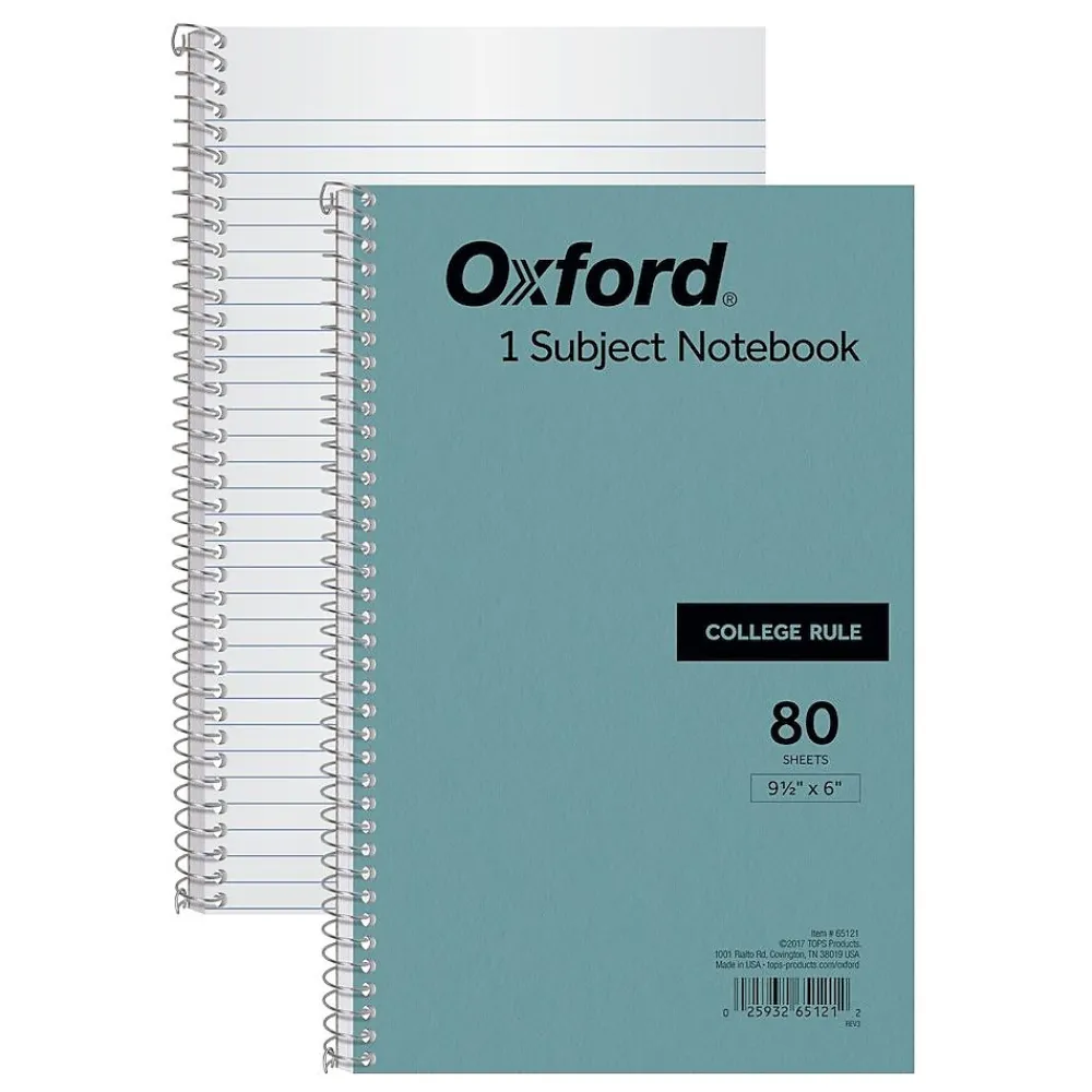Stay prepared for meetings, lectures or projects with this one-subject notebook. The college-rule format makes it easy to keep notes organized, while the spiral binding lets you flip through pages to find previously recorded information. A durable pressboard cover stands up to frequent use, shielding the pages from damage. This Oxford spiral-bound notebook features a compact size, so it fits neatly in a bag or desk drawer.