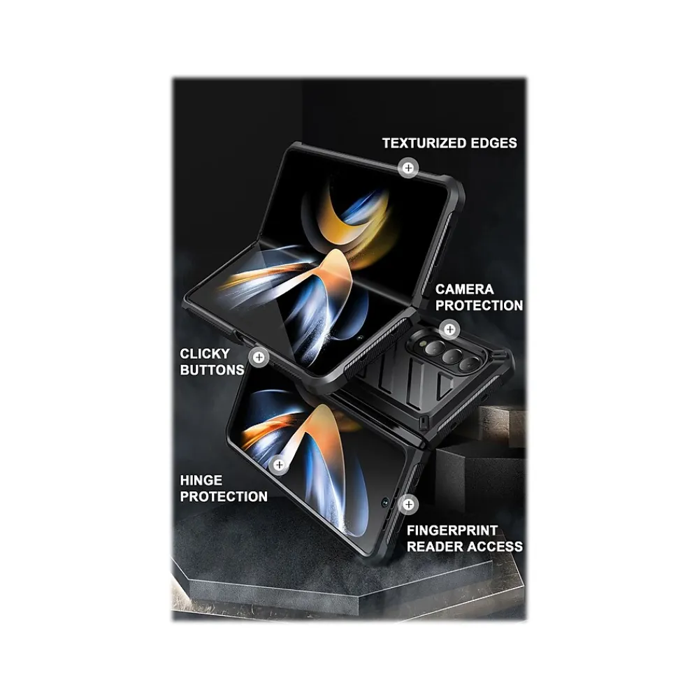 The SUPCASE Unicorn Beetle kickstand case offers multiple viewing angles and doubles as a ring holder. Compatible with Galaxy Z Fold4 (2022). Features a built-in screen protector and open access to fingerprint scanner.