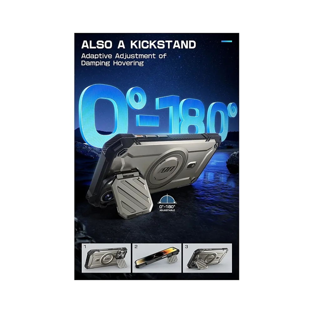 The SUPCASE Unicorn Beetle MAG XT rugged case offers full-body protection for your iPhone 15 Pro Max (6.7″ screen). Made of shock-absorbing TPU and unbending polycarbonate, this single-piece snap-on case safeguards your phone from drops and scratches.