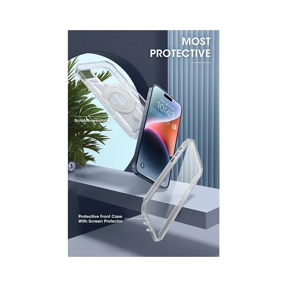 The SUPCASE Unicorn Beetle PRO MAG rugged case ensures full-body protection for your iPhone 15 Pro (6.1″ screen). Made of scratch-resistant polycarbonate with TPU bumpers, this single-piece snap-on case safeguards your phone from drops and scratches.
