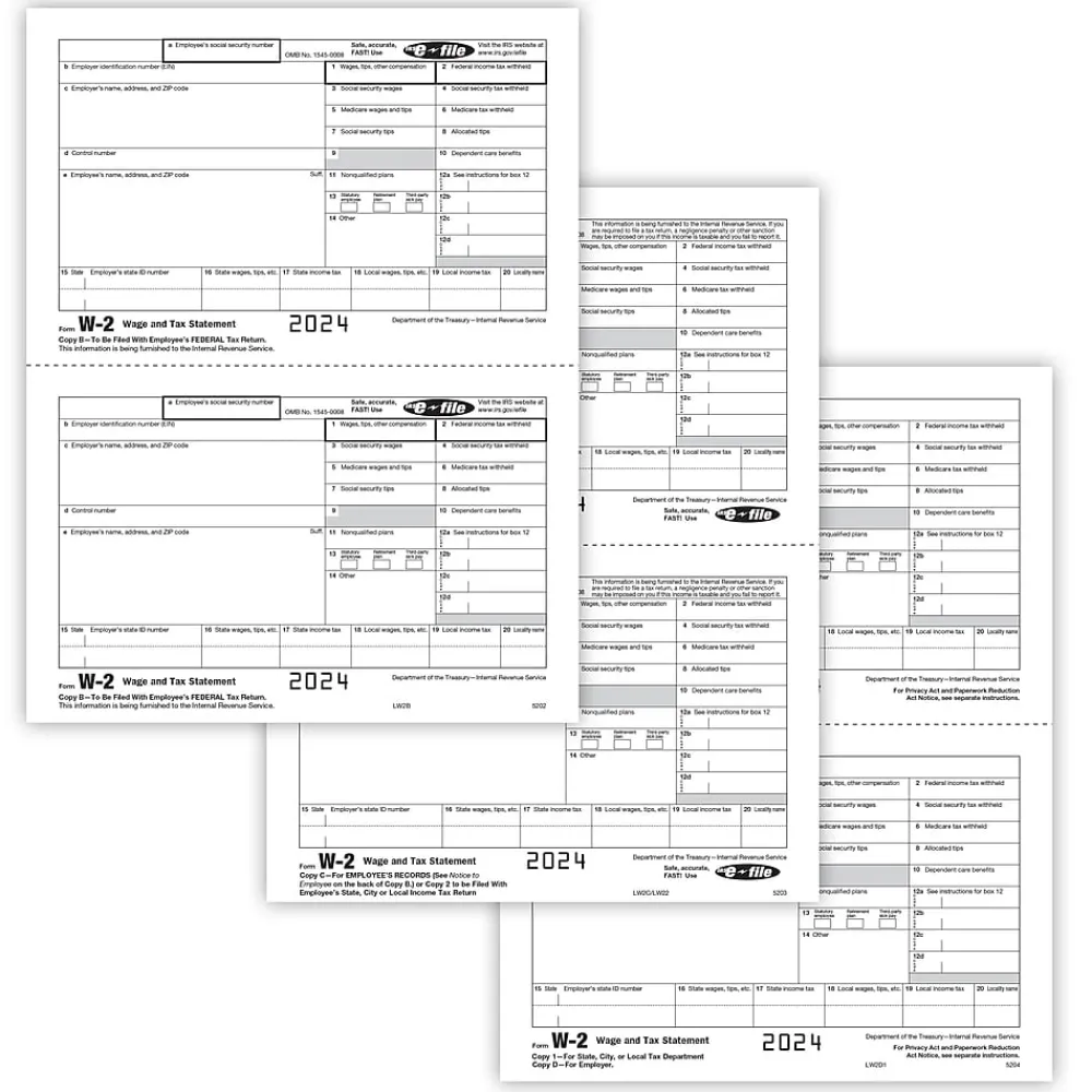 - W-2 recipient-only tax form set designed for organizations that will be required to e-file, and therefore will not need Copy A or transmittal forms 1096 or W-3