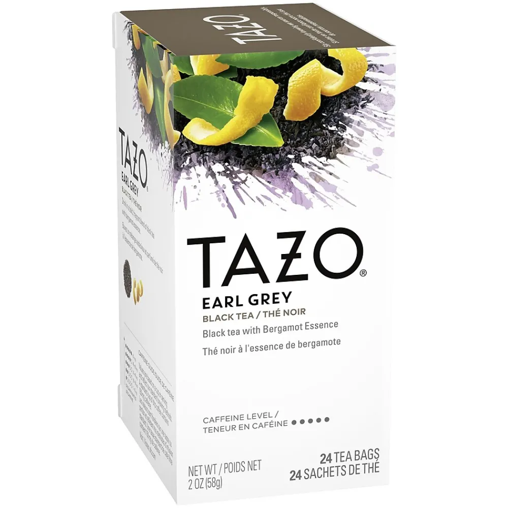 Sip on a cup of Tazo Earl Grey tea and savor the spicy citrus blend of Italian bergamot. Each box of Tazo Earl Grey tea includes 24 bags so you can keep your office fully stocked.