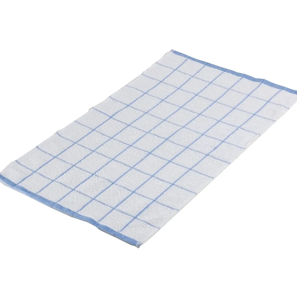 Terry kitchen towels have blue/white checkerboard design and are highly absorbent.