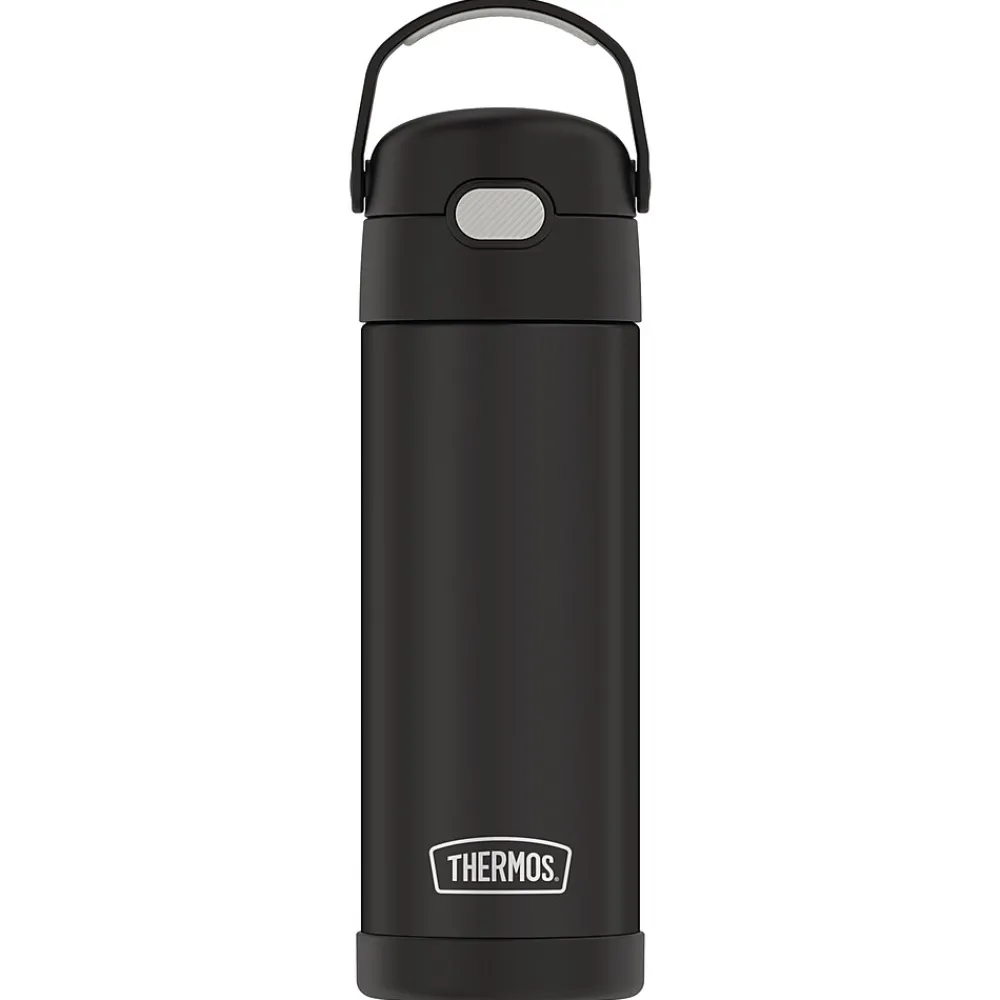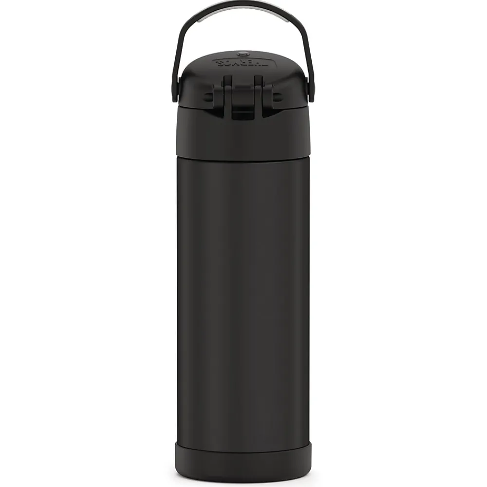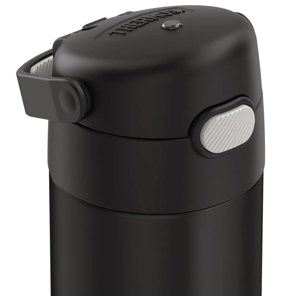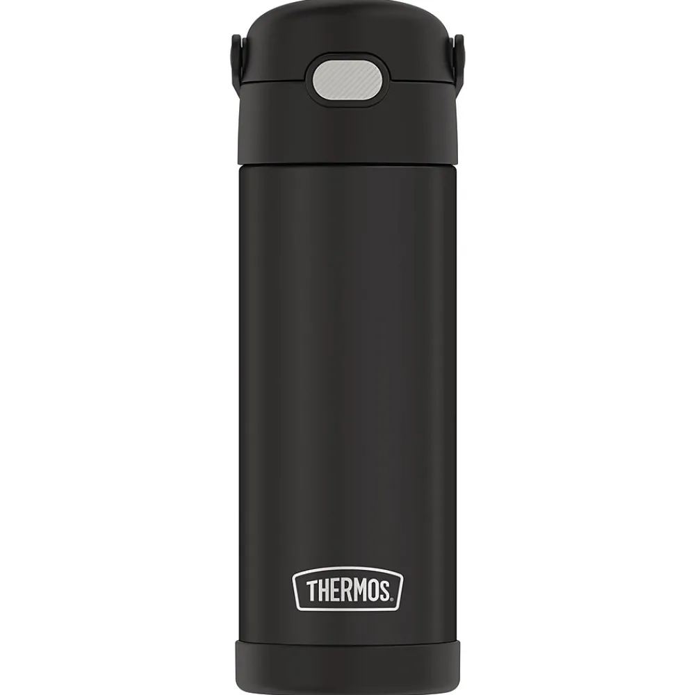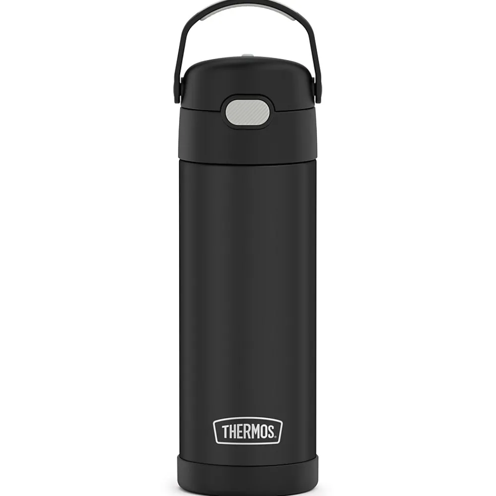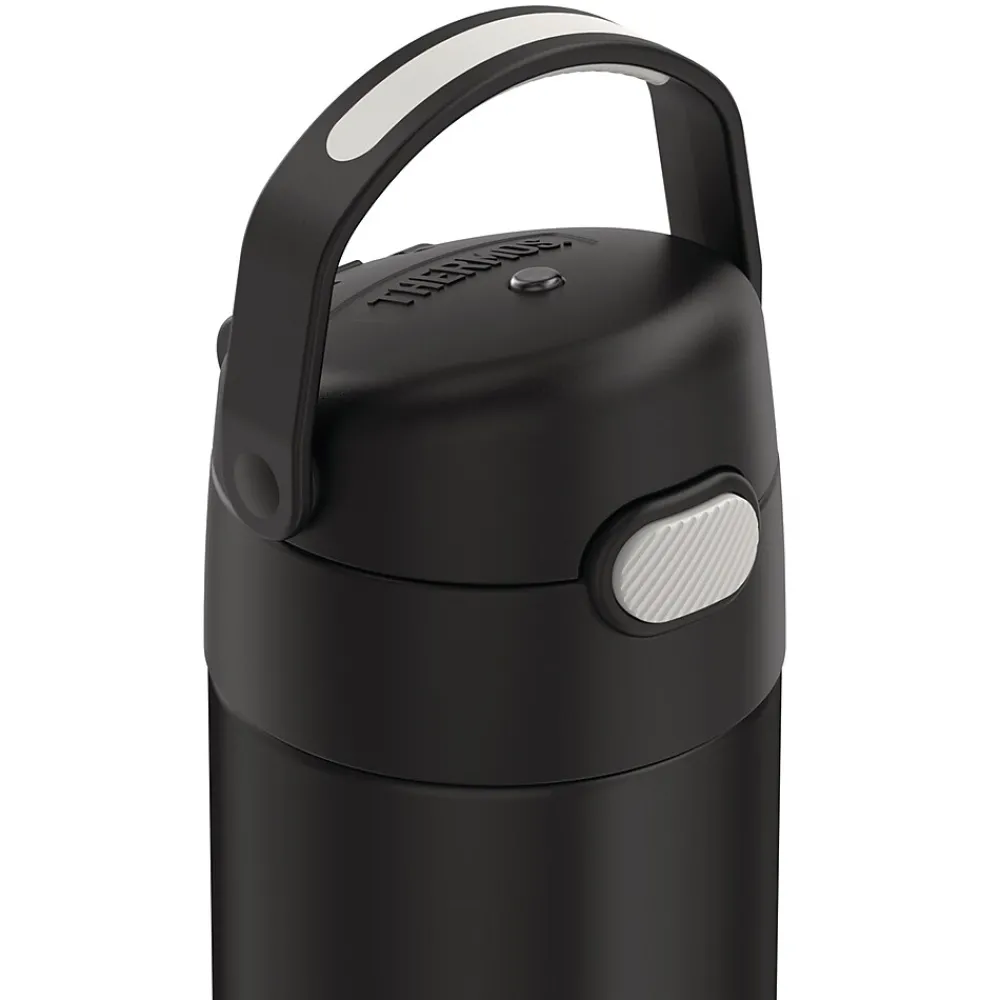 Thermos brand products offer superior cold retention that keeps beverages cool and delicious for hours, and the 16 Oz. FUNtainer Stainless Steel Bottle with Spout is no exception. Thermos vacuum-insulation technology virtually eliminates temperature change within the beverage container by creating an airless space between 2 stainless steel walls, keeping your child’s beverages colder, fresher, longer. This hydration bottle keeps beverages cold up to 12 hours. Constructed with double wall stainless steel, this Black Matte bottle is built to withstand the demands of everyday use. It also features a hygienic, push-button lid and an integrated, flip-up carrying loop.