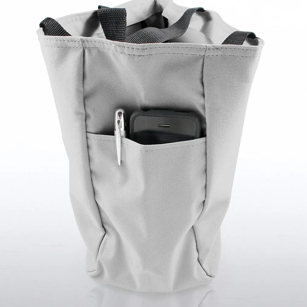 - Bag is made out of a heavy-weight poly-canvas with 15″ Handles and side pockets for extra carrying room