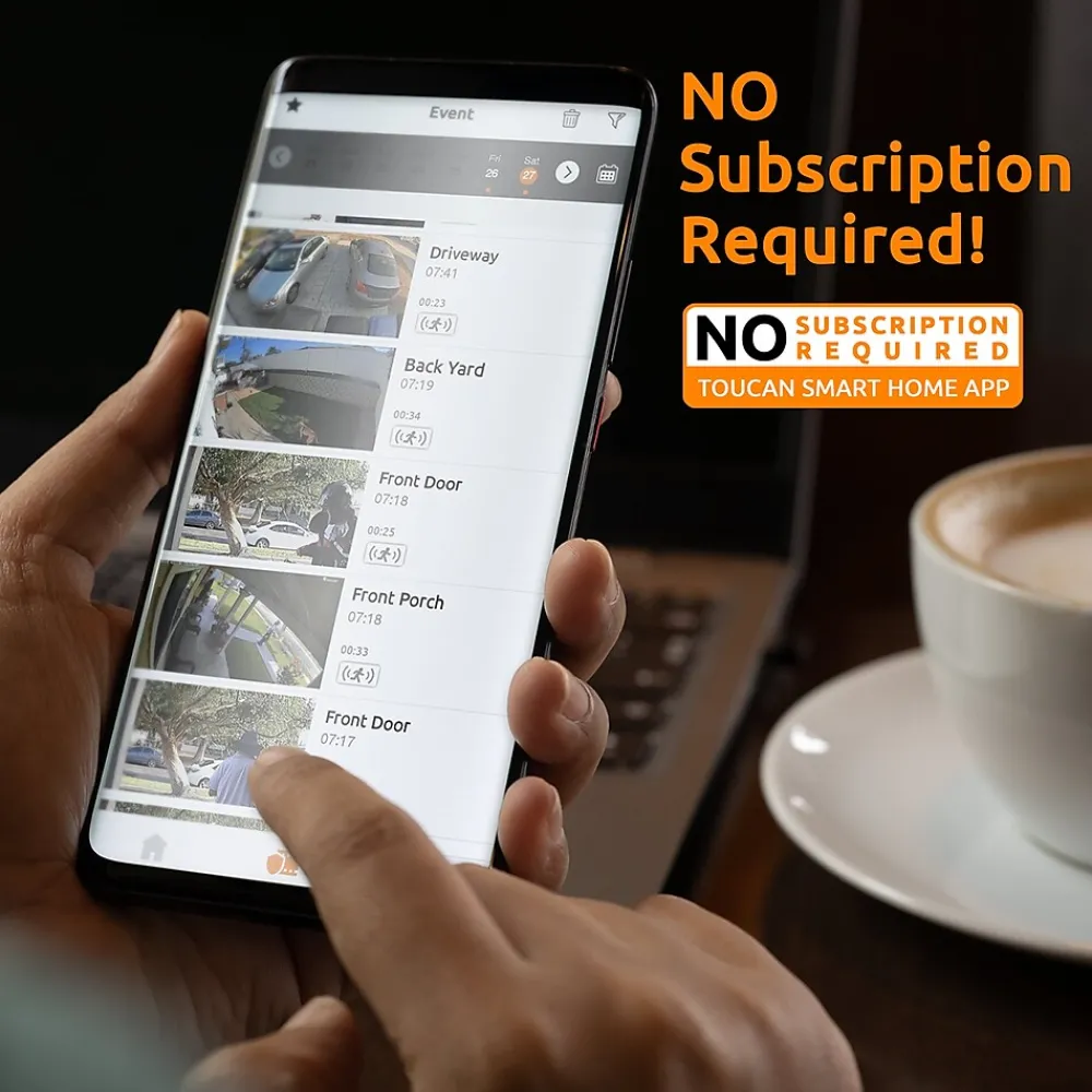 - Toucan Smart Home App installed on your smartphone allows control and access from anywhere. NO Subscription Required