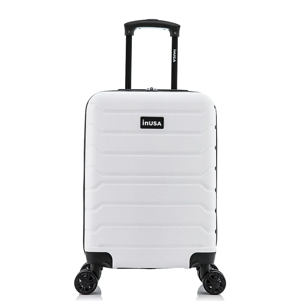 Improve your travel experience with this InUSA Trend carry-on luggage. Made of lightweight PC/ABS engineered material with a brushed finish, this luggage features push-button locking internal retractable trolley system and four dual 360-degree silent spinner wheels for smooth, effortless mobility. The hard-flex construction offers maximum strength, durability, and resistance to water and scratches. Four side studs let the luggage stand on its side, while the top ergonomic gel handles provide comfortable and easy lifting.