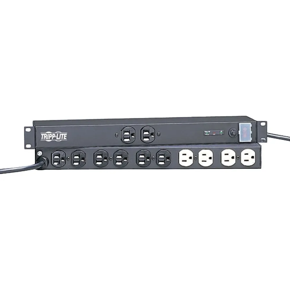 Tripp Lite 12-Outlet surge suppressor with 15′ power cord has 2 diagnostic LEDs to indicate protection and ground status. Surge suppressor includes adjustable rack-mount hardware which helps to easily mount on wall or rack.
