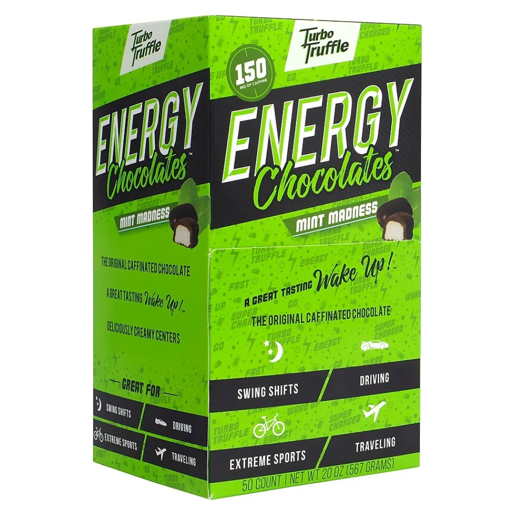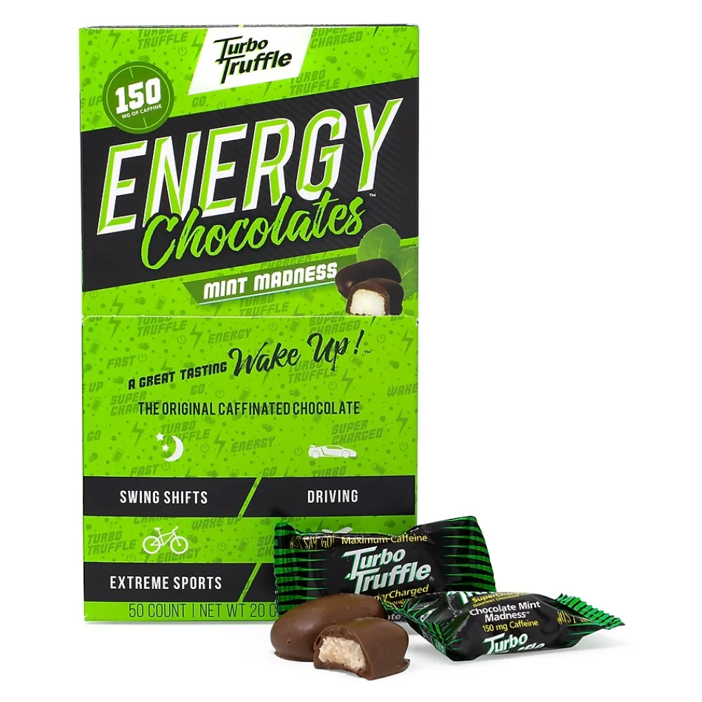 - A 50-Piece box of Turbo Truffles Energy Chocolate Mint Madness flavor