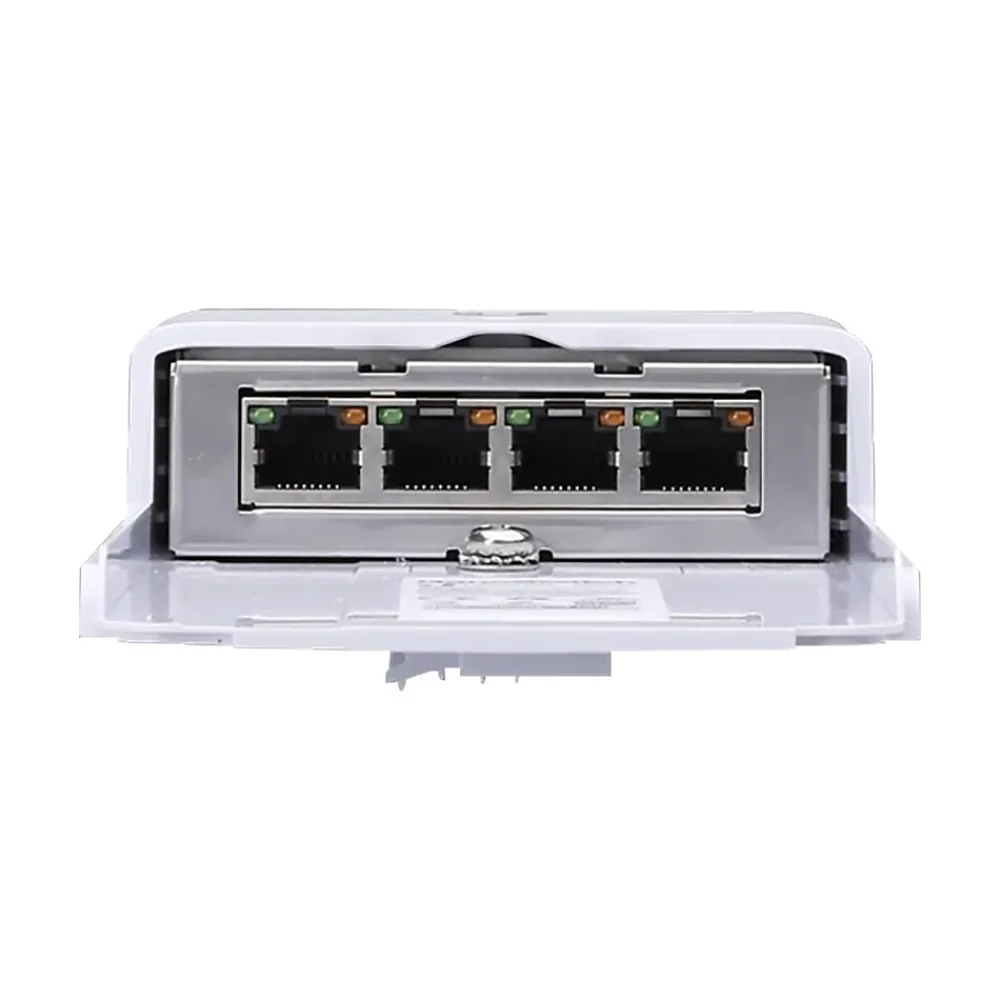 - Featuring a durable, weatherproof form factor, switch is great for outdoor deployment; made of white polycarbonate